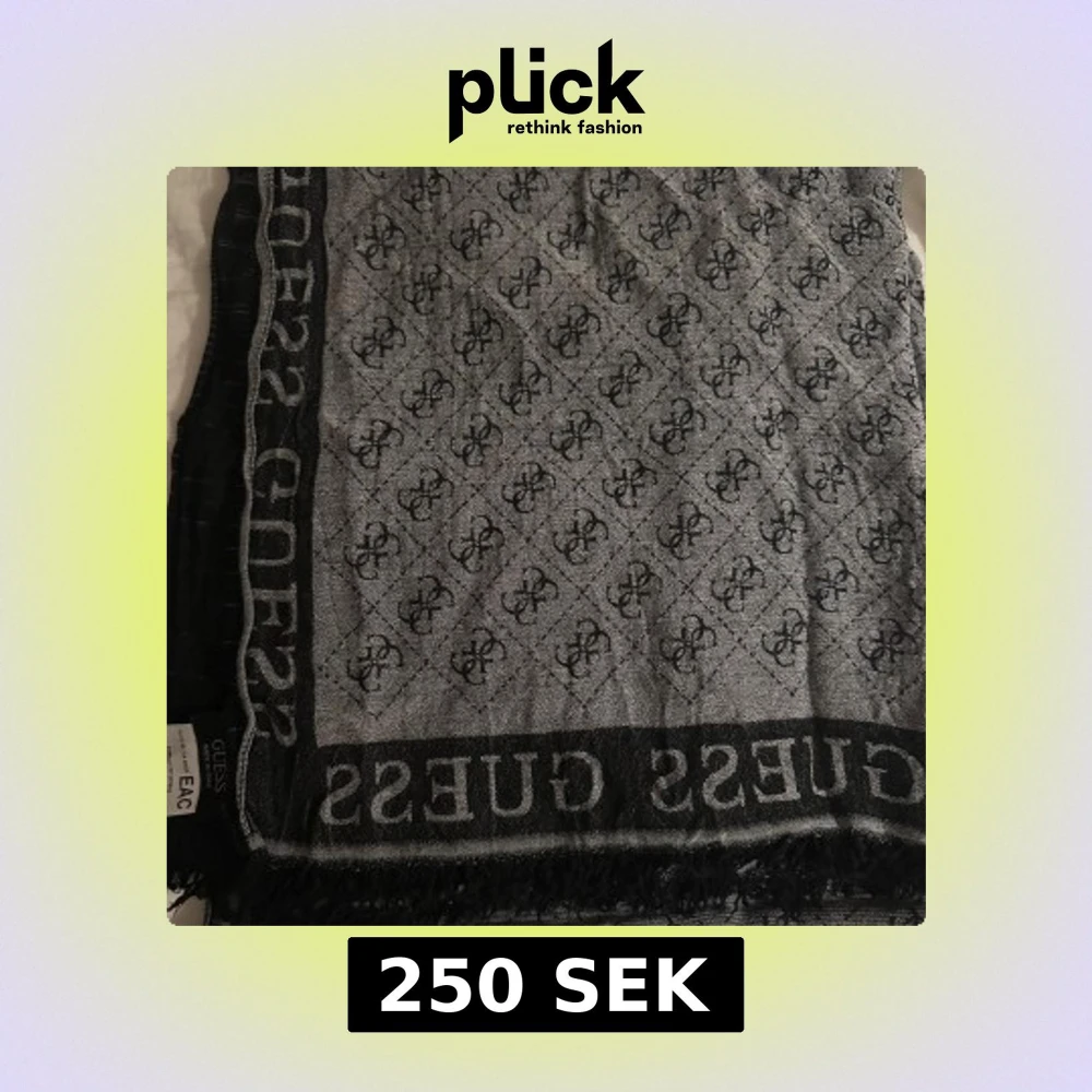 Snygg och stilren halsduk från Guess i grått och svart med ett elegant mönster och logotyp längs kanten. Perfekt för att hålla dig varm och trendig under kyliga dagar. Nypris var 650kr köpt på åhles ett par år sedan.