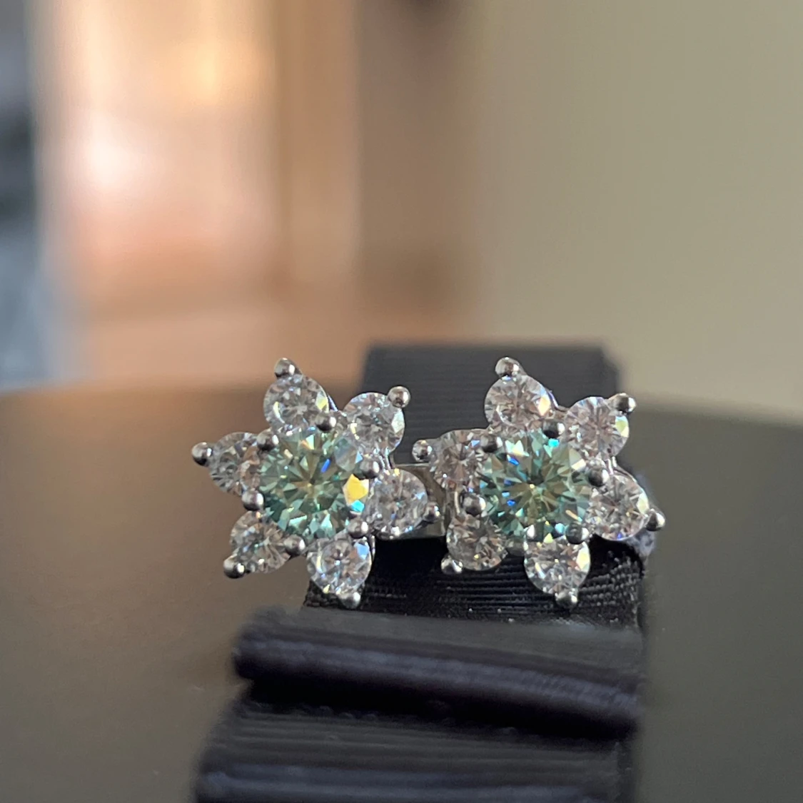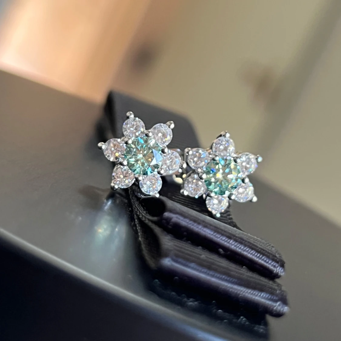 Supersnygga örhängen från GRA i stjärnform med glittrande vita och ljusgröna stenar. Sitter i silverfärgad infattning och har en riktigt lyxig vibe. Perfekta för dig som vill sticka ut med något unikt och glittrigt.