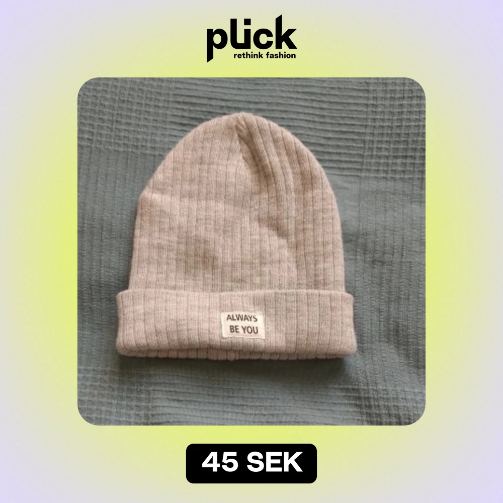 Säljer en snygg grå ribbad mössa med texten "Always be you" på framsidan. Mössan passar någon med litet huvud då den är en barnmössa. Perfekt för höst och vinter. Skriv gärna till mig om du har fler frågor!