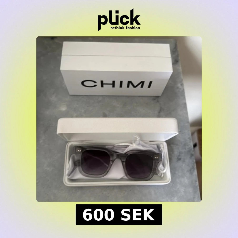 Säljer ett par stilrena solglasögon från CHIMI med transparent grå båge och mörka glas. Rektangulär form som ger en modern vibe. Kommer med originaletui och putsduk. Perfekta för att lyfta din look i sommar!