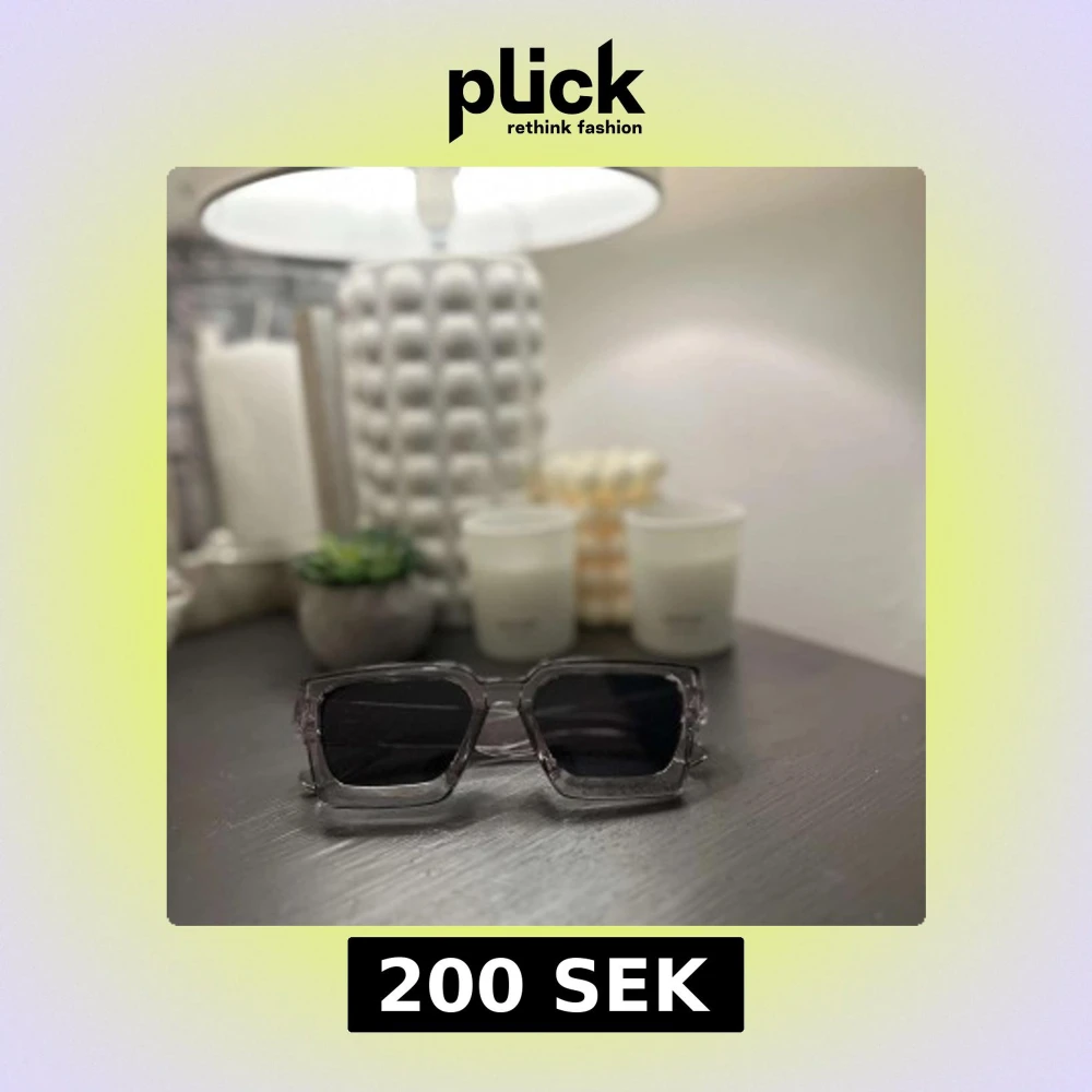 Snygga solglasögon med transparent grå båge och svarta glas. De har en modern, kantig form som ger en cool vibe. Perfekta för att lyfta din stil under soliga dagar.