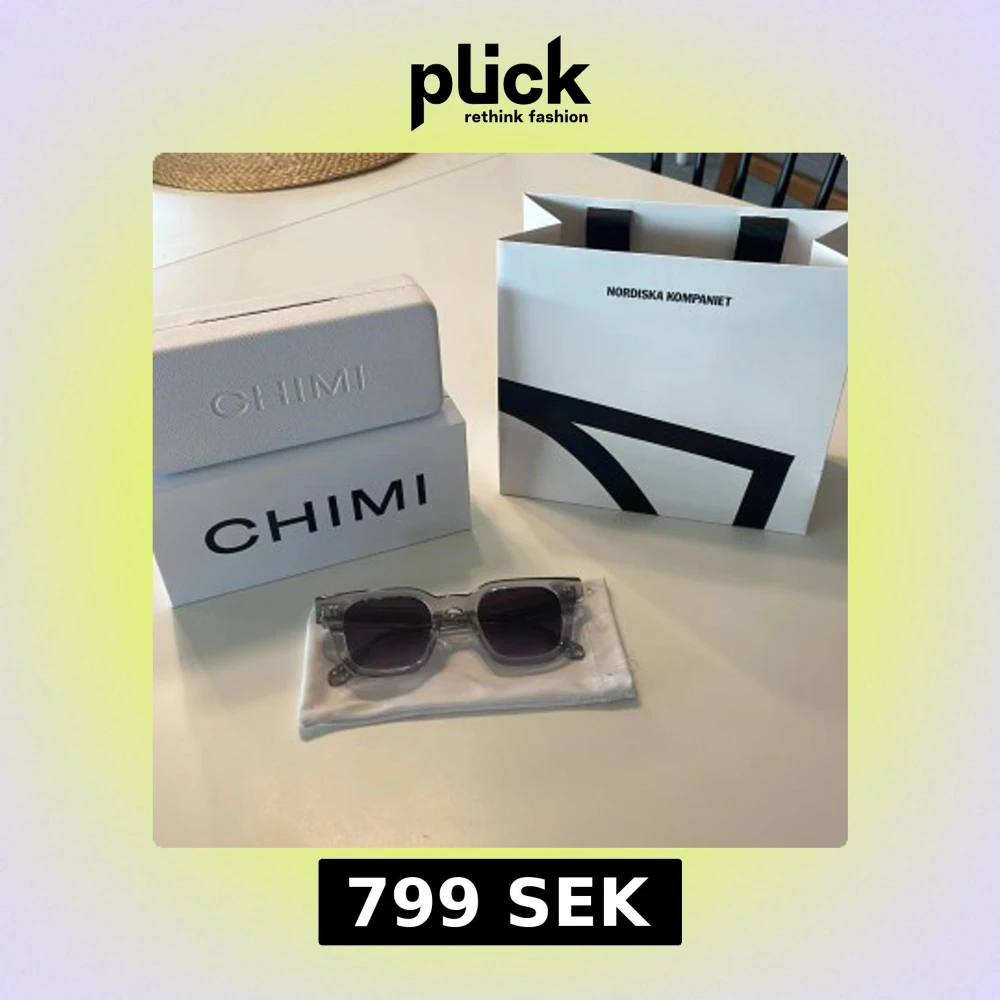 Snygga solglasögon från CHIMI med transparent grå båge och mörka fyrkantiga linser. Dessa är från NK i Göteborg. Stilren och modern design som passar perfekt till sommaren. Kommer i original fodral och NK påse. Modell:04. I helt nytt skick. Original pris: 1250kr.