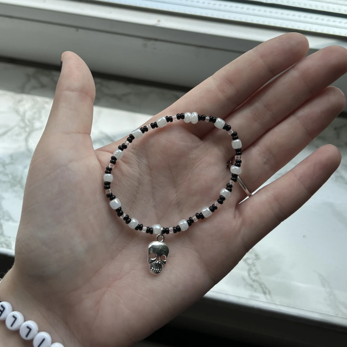 Handgjorda pärlarmband med berlock i silver detalj. 🖤 gratis frakt via köp nu, i 14 dagar