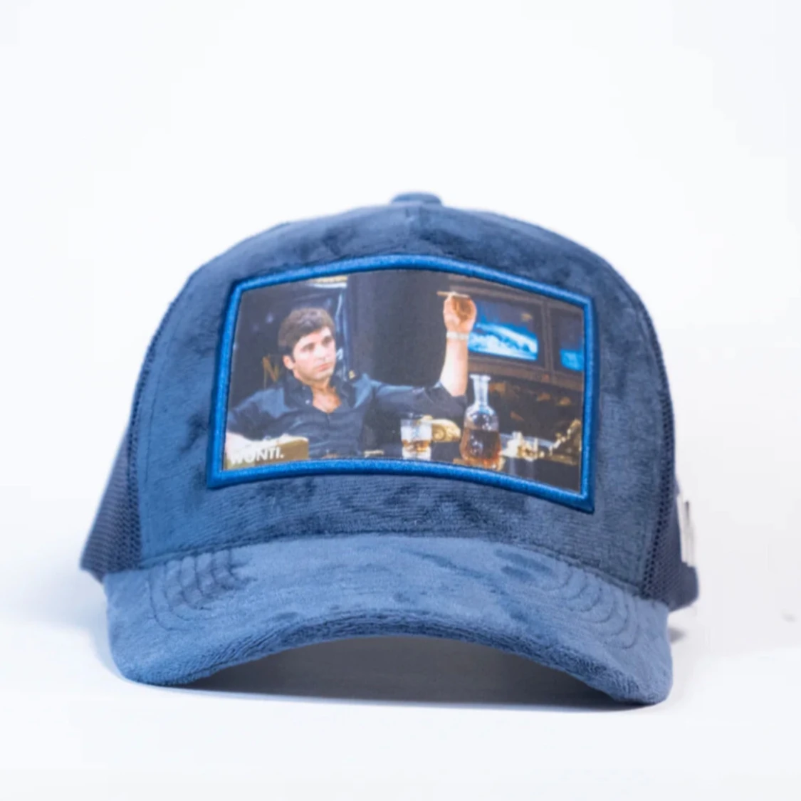Snygg blå keps från Wonti med ett coolt tryck på framsidan. Kepsen har en mesh-baksida för bra ventilation och en böjd skärm. Perfekt för att ge din outfit en avslappnad och trendig look!