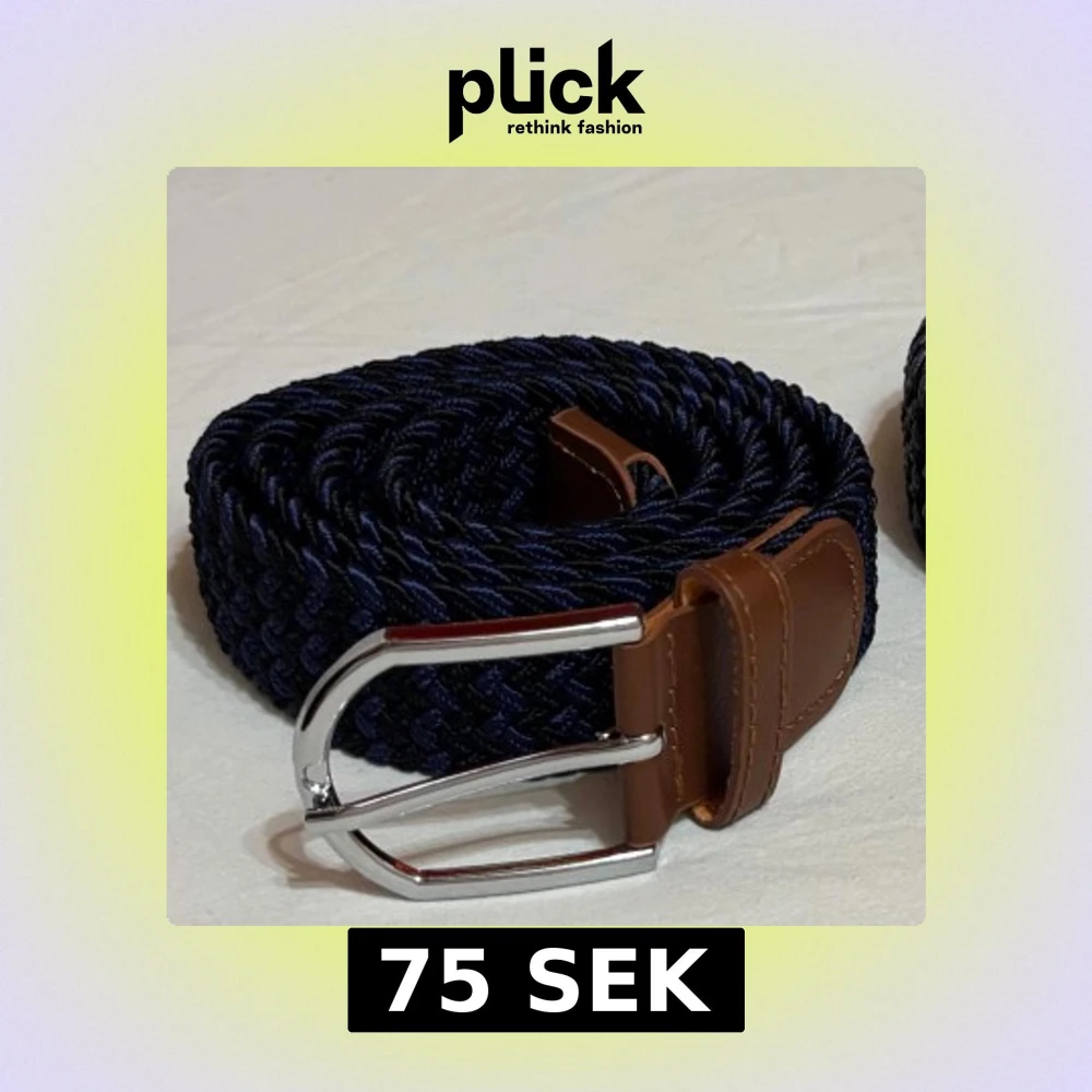 Två snygga flätade herrbälten, ett i svart/grått och ett i svart/mörkblått, med detaljer i brunt läder och silverfärgat metallspänne. Perfekt accessoar för att lyfta din outfit med en stilren touch.