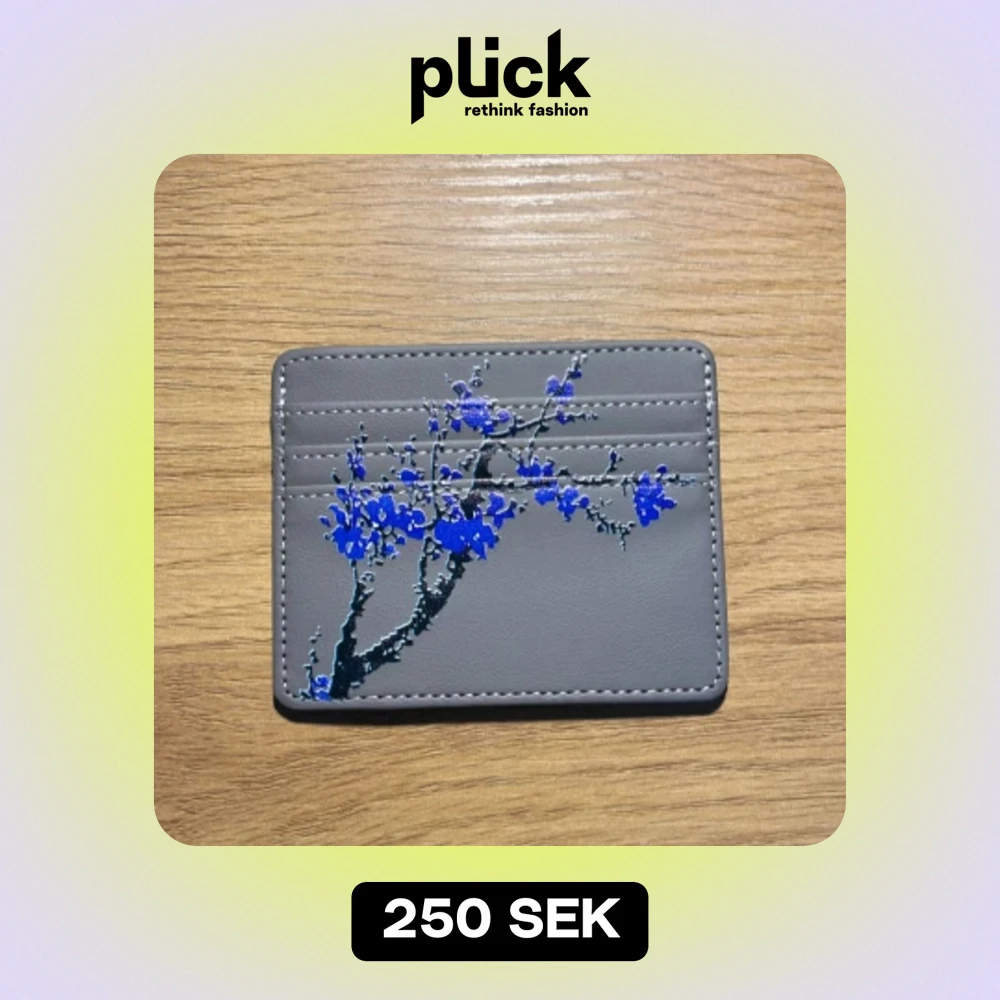 Säljer en stilren grå plånbok med ett vackert blått blommönster på framsidan. Plånboken har flera kortfack och är perfekt för att hålla ordning på dina kort. Den är kompakt och lätt att bära med sig.