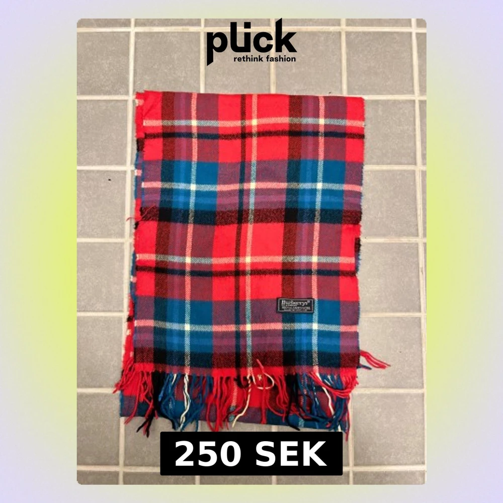 Klassisk rutig halsduk från Burberrys i 100% ull. Halsduken har fransar i ändarna och den ikoniska Burberrys-etiketten. Perfekt accessoar för att lyfta din outfit. Anledningen att de stör ”burberrys” är för att de är en äldre modell.