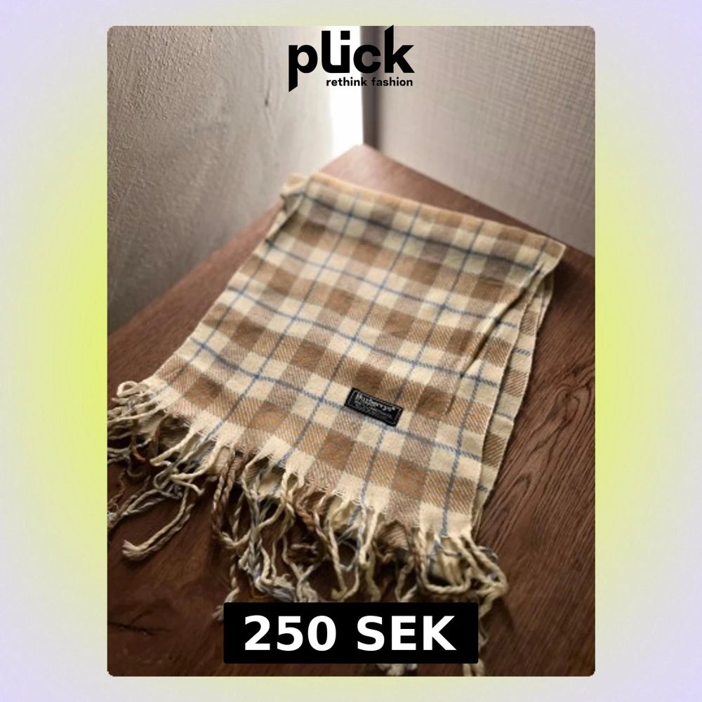 Klassisk rutig halsduk från Burberrys i 100% ull. Halsduken har fransar i ändarna och den ikoniska Burberrys-etiketten. Perfekt accessoar för att lyfta din outfit. Anledningen att de stör ”burberrys” är för att de är en äldre modell.