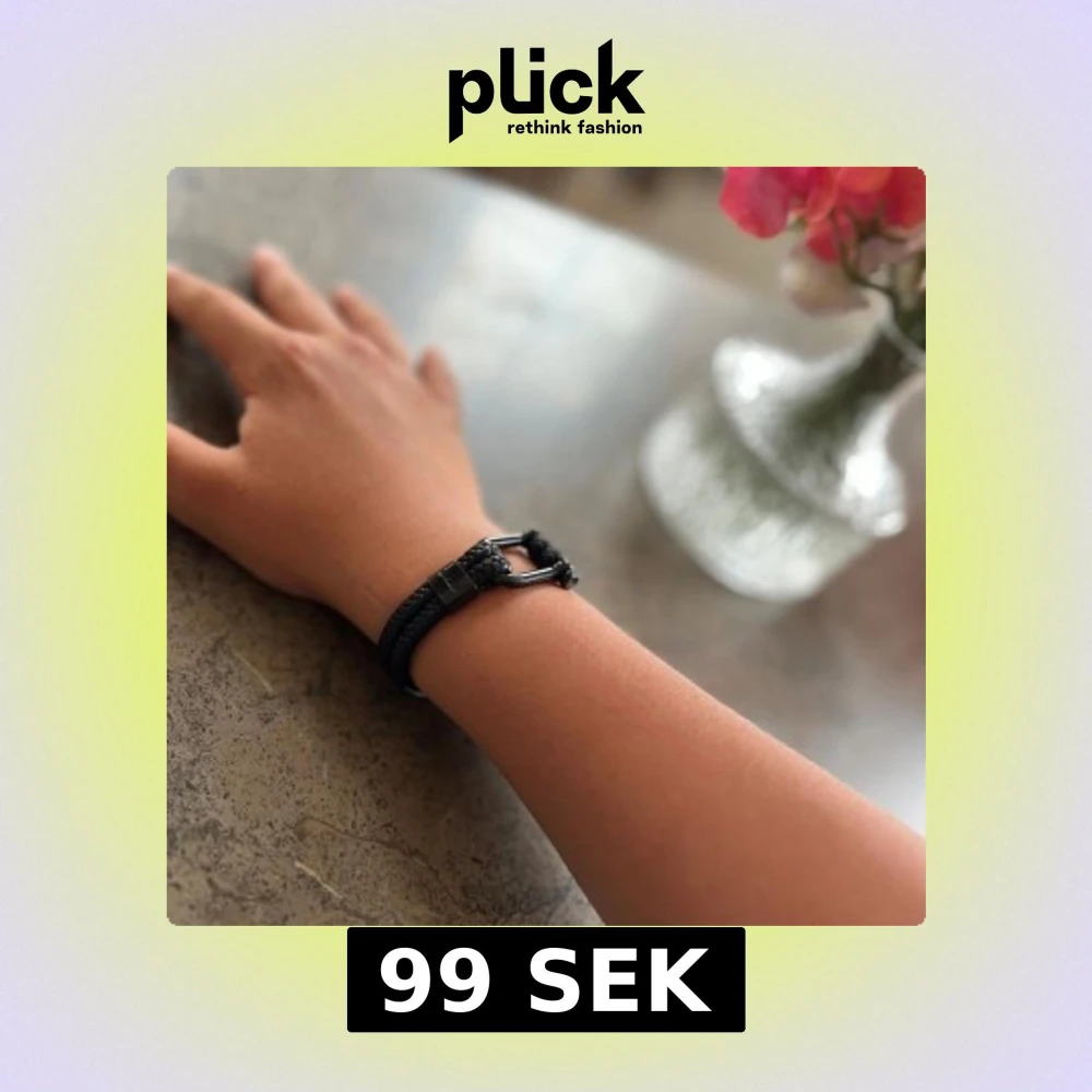 Stilrent svart armband med flätad design och ett coolt metallspänne. Perfekt accessoar för dig som gillar en enkel men edgy look. Passar både tjejer och killar och är lätt att matcha med andra smycken.