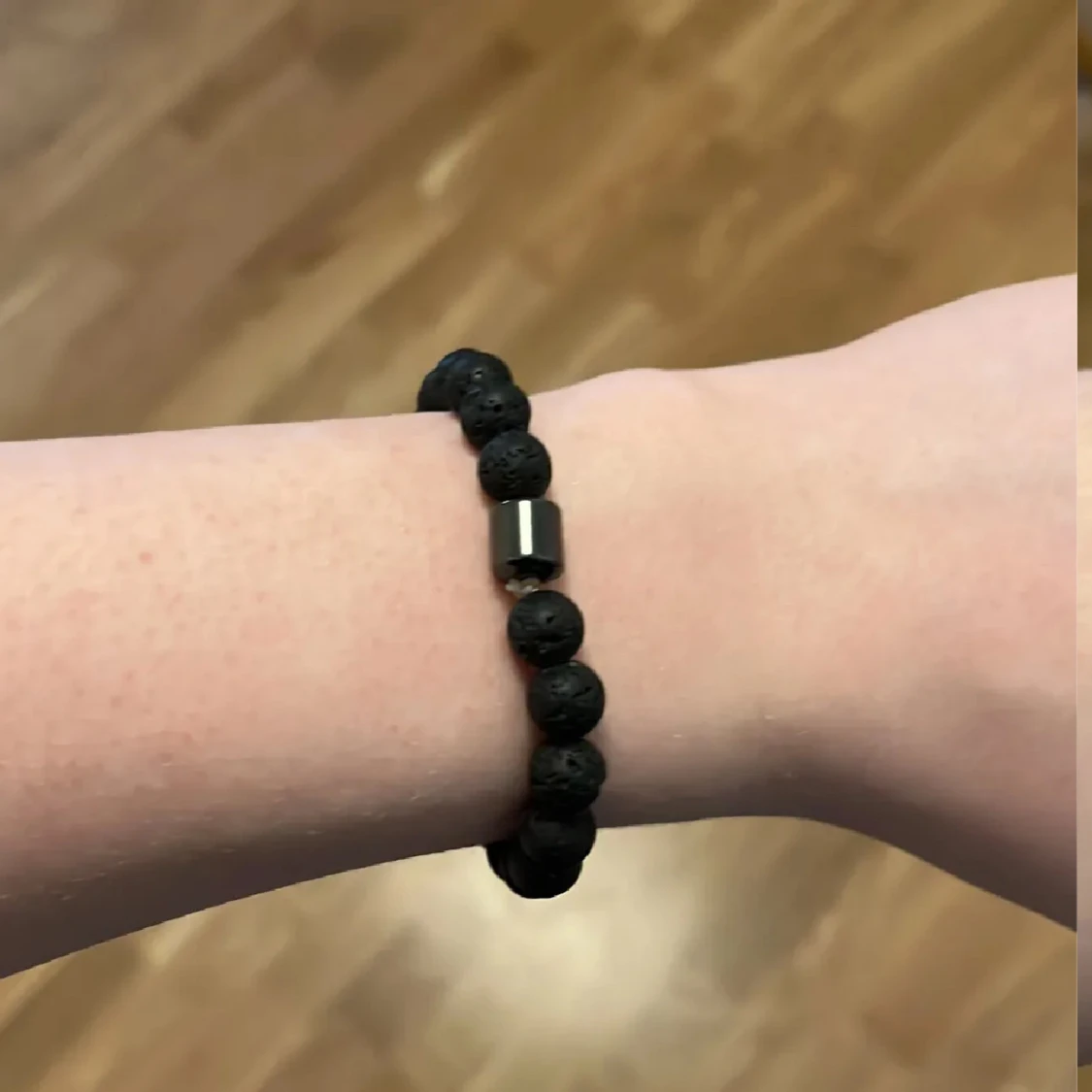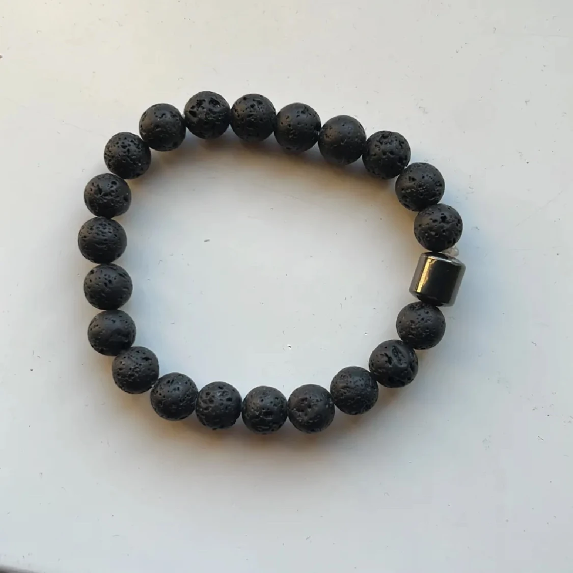 Svart armband med pärlor som som liknar stenar