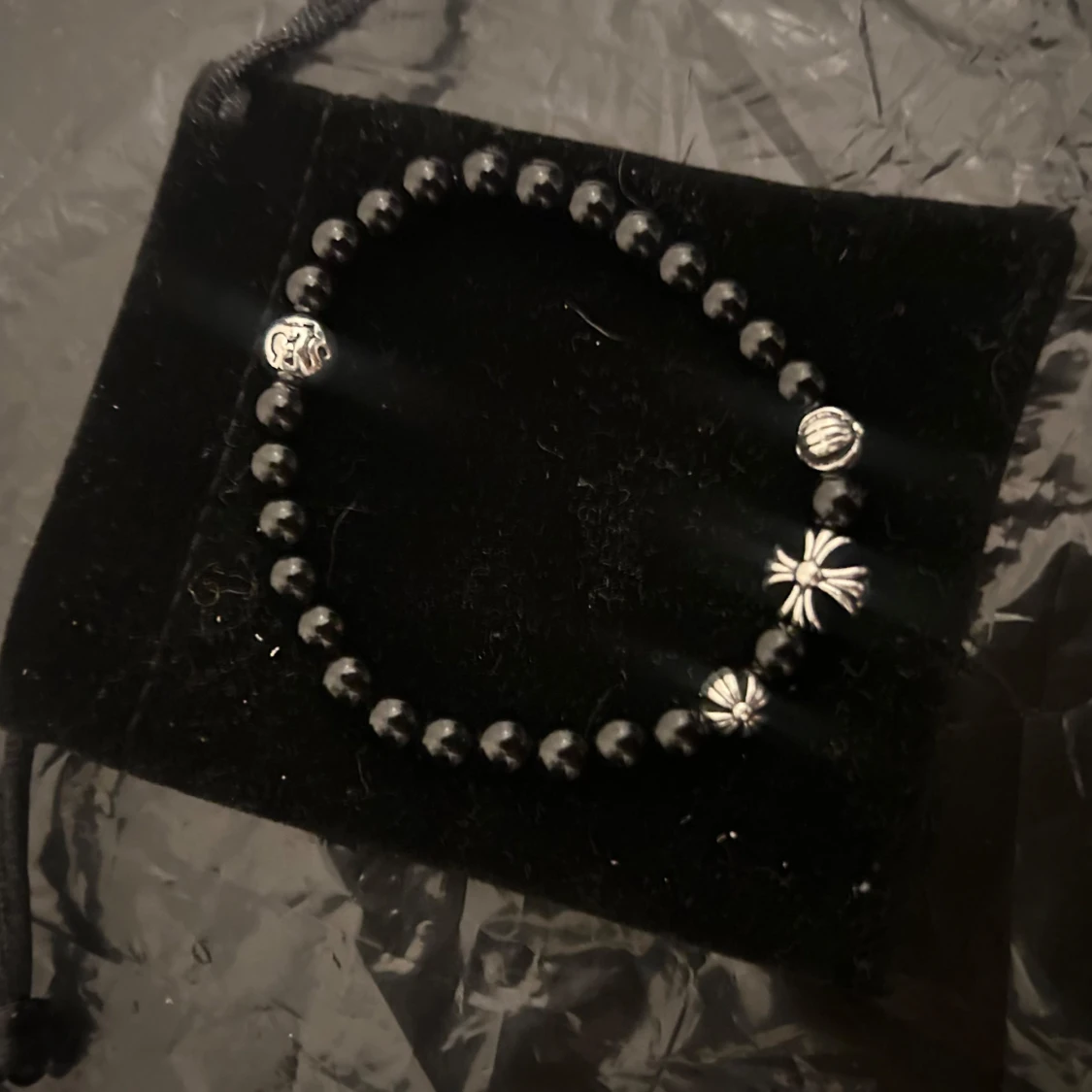 Helt ny svartpärlarmband med silver design! Kommer med lilla svarta påsen! Ställ frågor om ni har några, buda på! Kontakta mig ;) 😎