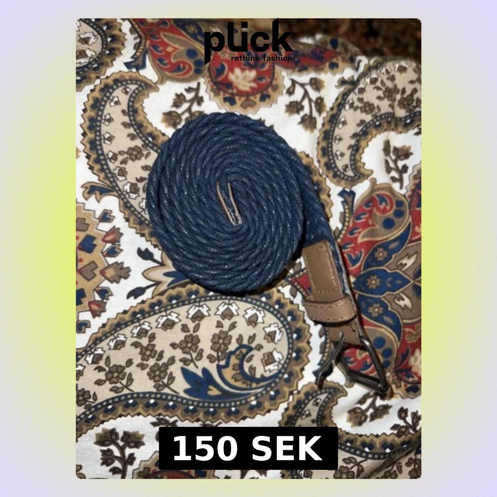 Snyggt mörkblått flätat bälte med detaljer i brunt skinn och metallspänne. Bältet har en rundad, grov flätning som ger en cool och modern look. Perfekt för att lyfta din outfit med en stilren accessoar.