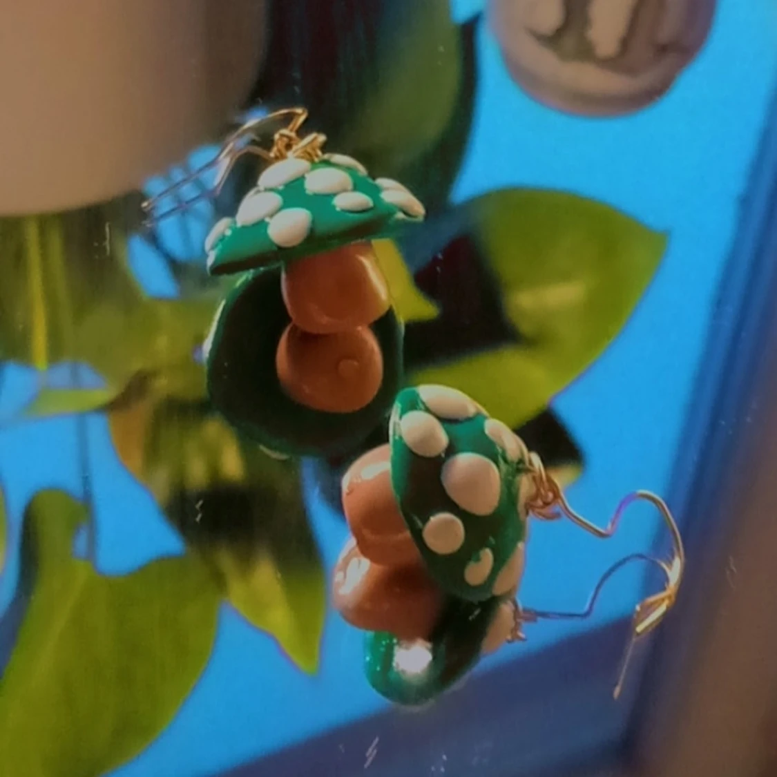 handmade green mushroom earrings made by me!! / shipping 15KR if you purchase 3 or more items it's free shipping 😀