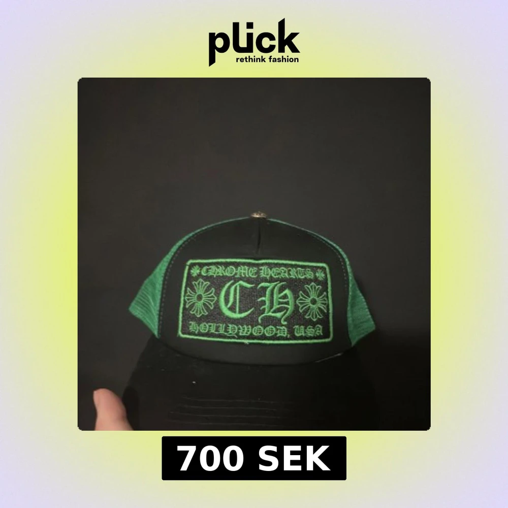 Snygg truckerkeps från Chrome Hearts i svart och grönt med broderad logga och blommor framtill. Kepsen har mesh på sidorna och baksidan samt en metallknapp med gravyr på toppen. Tillverkad i bomull och polyester.