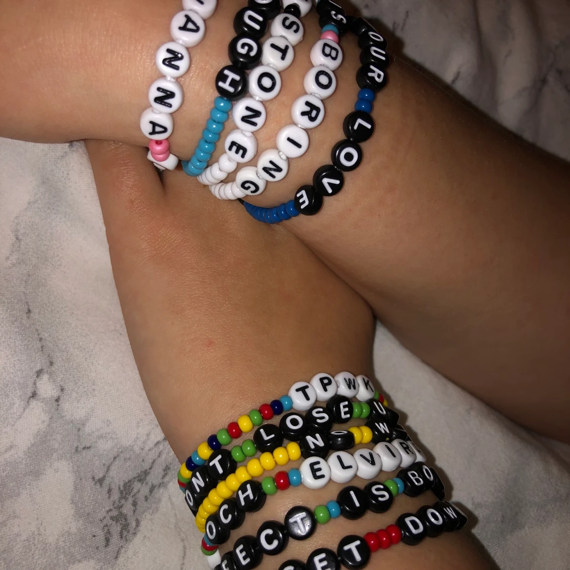 Designa ditt eget armband! Välj text, färg och mönster. 35kr per armband. Gratis frakt.