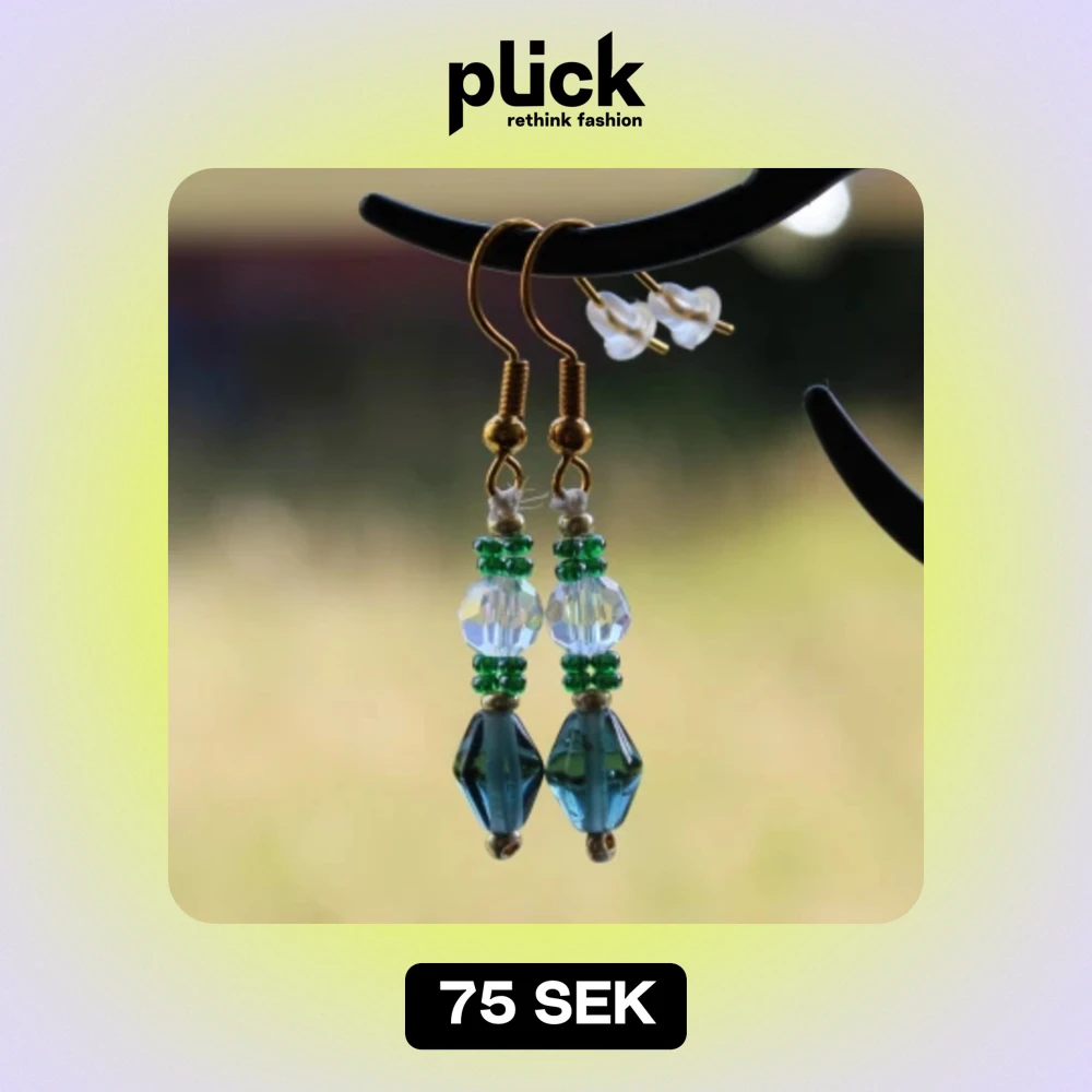 Säljer ett par superfina örhängen med pärlor i olika färger. De har en mix av gröna, blå och genomskinliga pärlor som ger en härlig färgkombination. Perfekta för att liva upp vilken outfit som helst! 💚💙✨