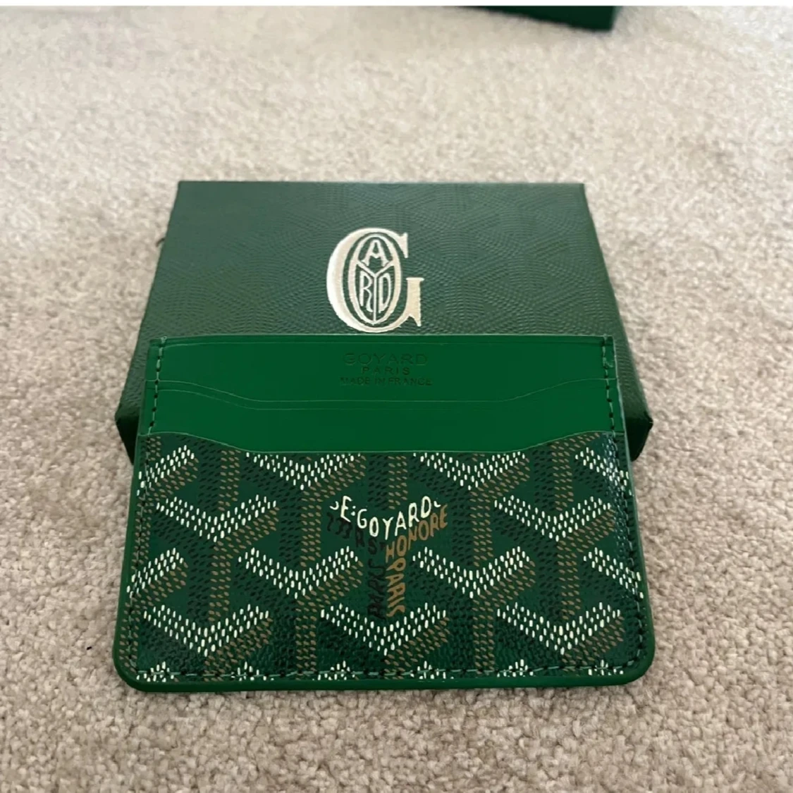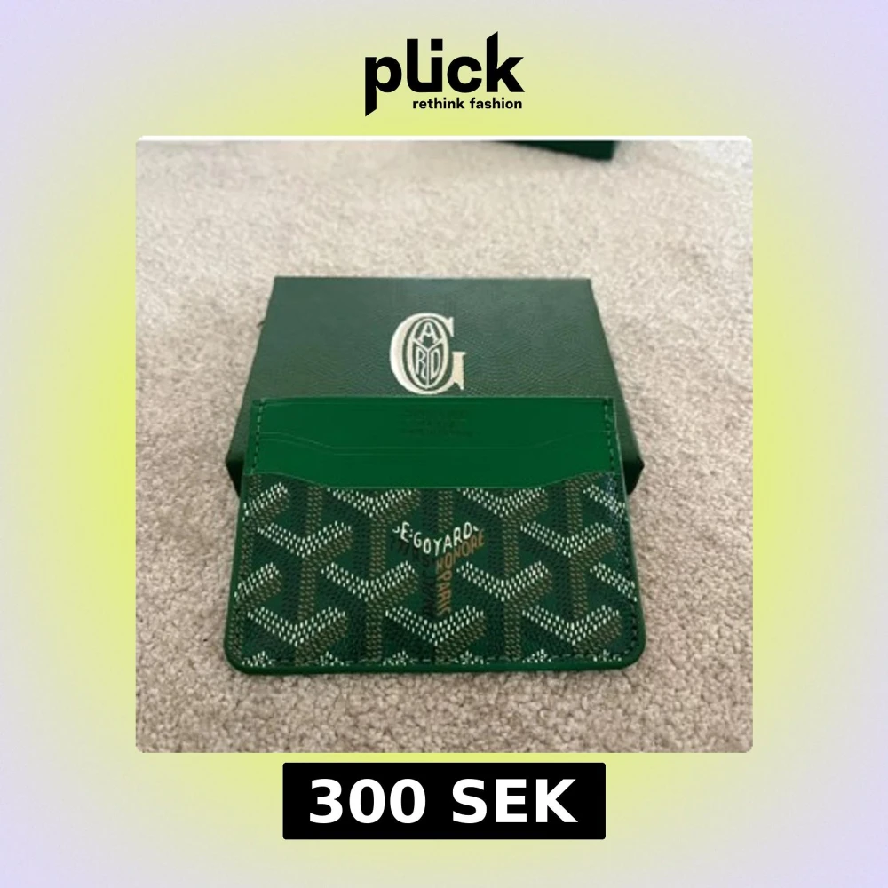Säljer en grön plånbok med deras ikoniska grafiska mönster i vitt och svart. Plånboken har flera kortfack och är tillverkad i skinn med snygg finish. Perfekt för dig som vill ha något unikt och stilrent i fickan.