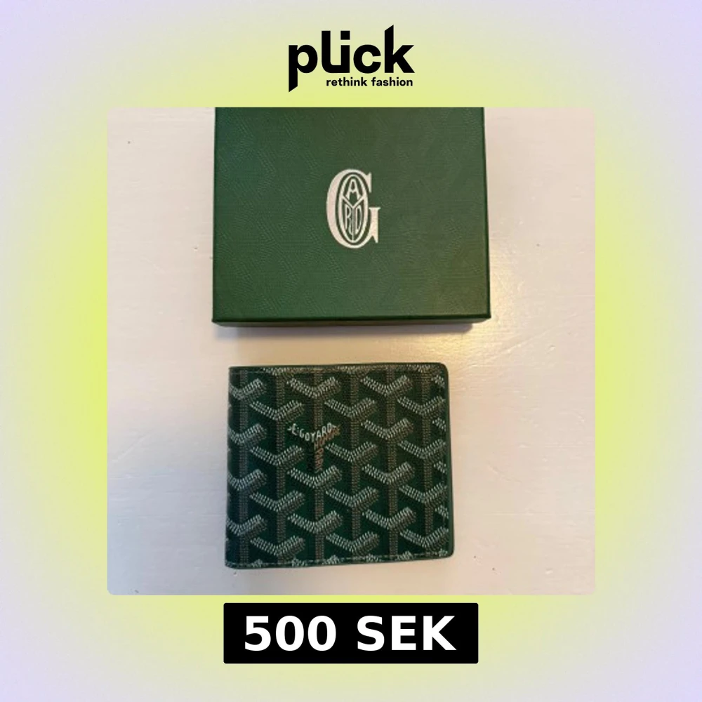 Snygg grön plånbok från G*ya** med ett ikoniskt mönster. Plånboken har flera fack för kort och sedlar, perfekt för att hålla ordning på dina tillhörigheter. Den kommer i en matchande grön låda med logotyp.