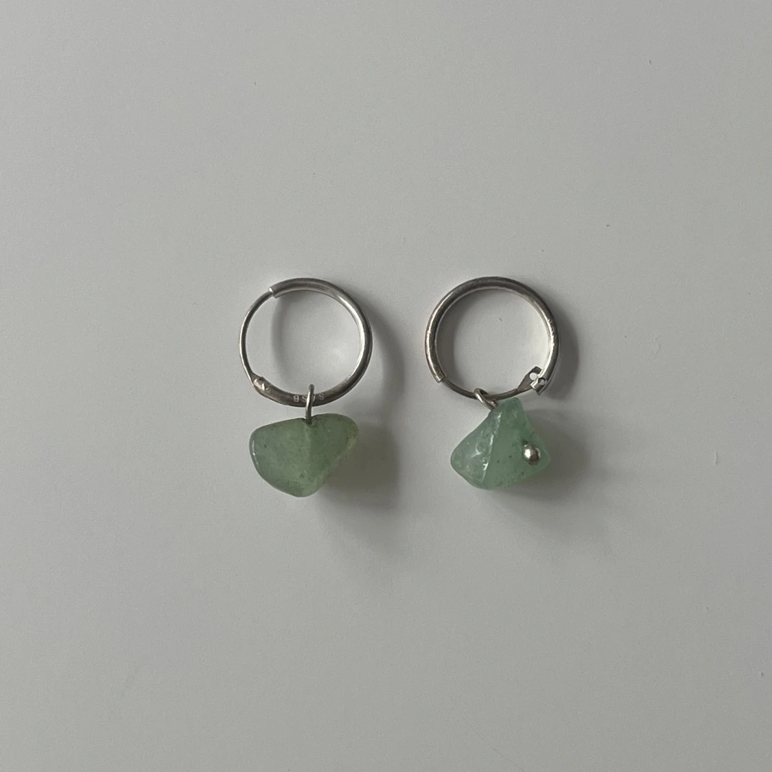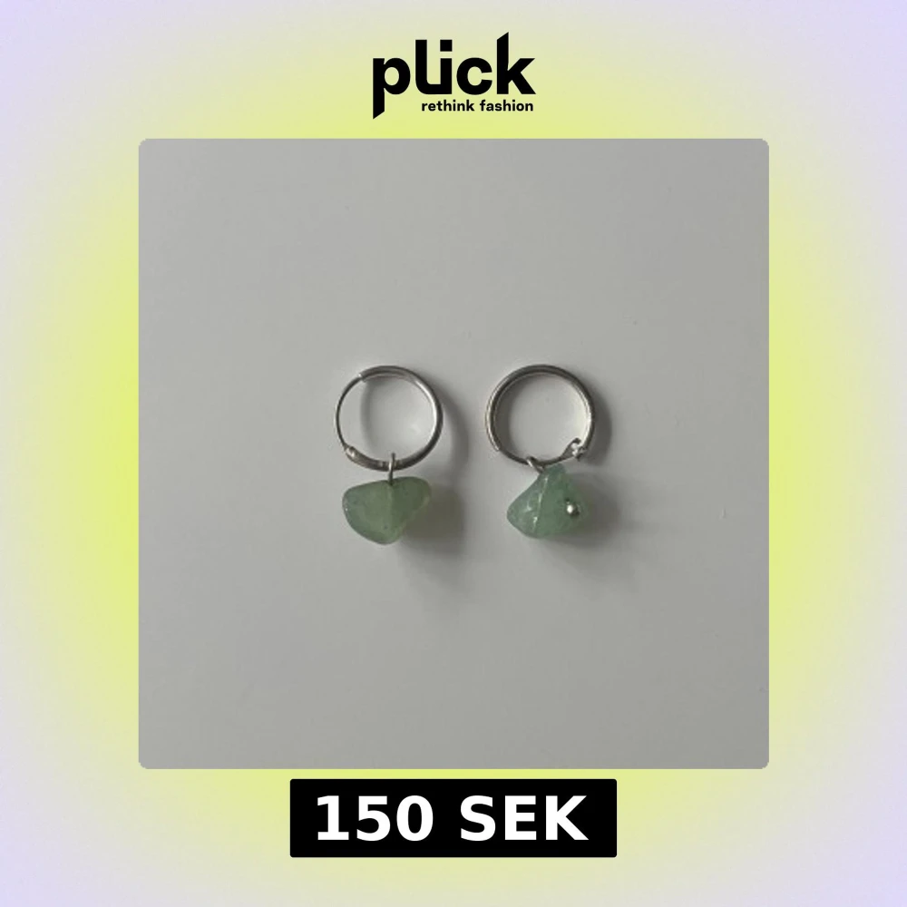 Snygga silvriga hoops med hängande grön aventurin i oregelbunden form. Perfekta för dig som gillar en unik och trendig stil. Stenarna ger örhängena en cool och naturlig vibe.