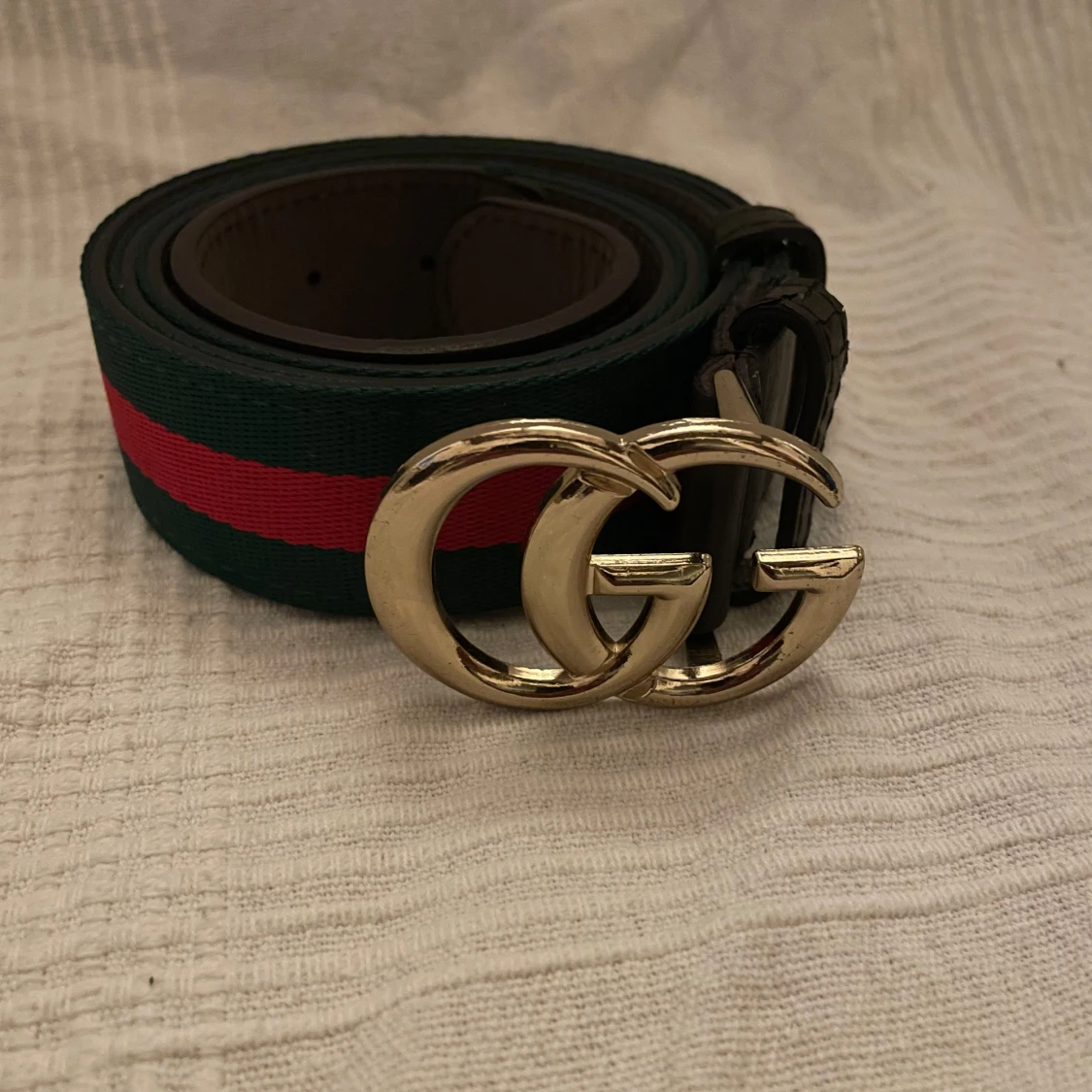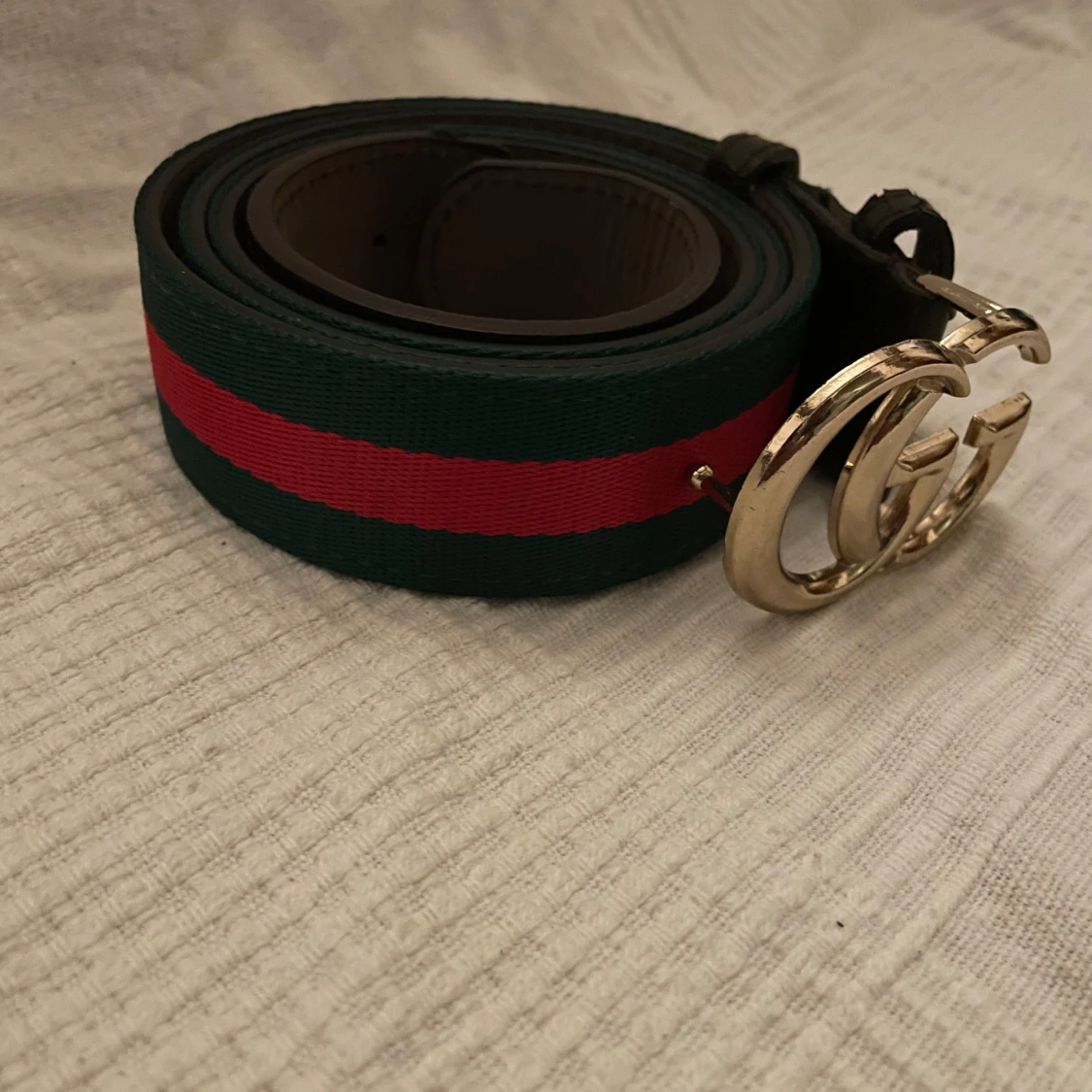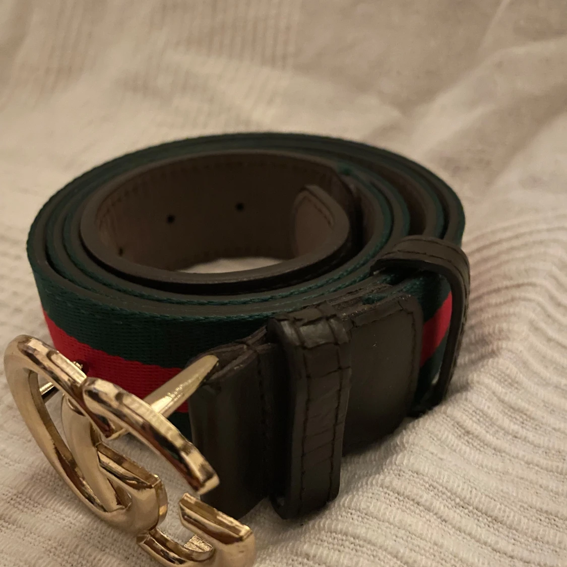 Säljer ett Gucci-läderbälte med det klassiska GG-spännet. Bältet är en tidlös accessoar som kombinerar stil och kvalitet, perfekt för både vardag och fest. Det är tillverkat i exklusivt, slitstarkt läder och ger en elegant touch till vilken outfit som helst.