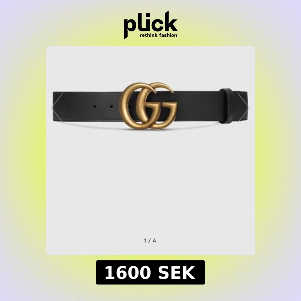 Snyggt svart skärp från Gucci med ett stort, ikoniskt GG-spänne i guld. Perfekt för att ge en lyxig touch till din outfit. Skärpet är tillverkat i skinn och har en klassisk design som aldrig går ur stil.orginal så klart!ordinarie pris ca 4200