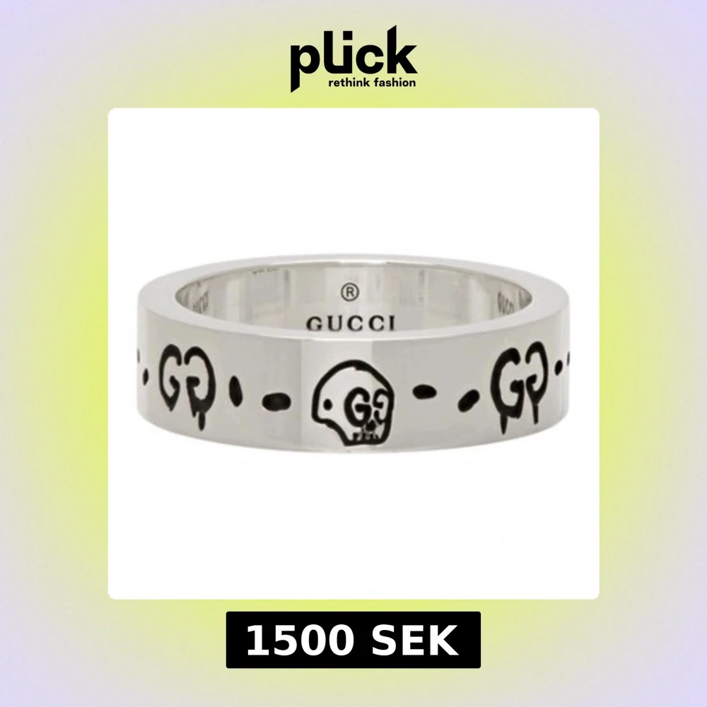 Silver Trouble Andrew Edition Slim ’GucciGhost’ Skull ring. En unik kollektion mellan artisten Trouble Andrew och Gucci! Ringen är i 100% 925 Sterling silver och tillverkad i Italien. Självklart äkta, inköpt från SSENSE och kvitto finns. Nypris från Guccis hemsida idag är $410. Gucci size (IT) är 22. Aldrig använd och allting originalt medföljer. Bilder inlagda som referens samt egna :)