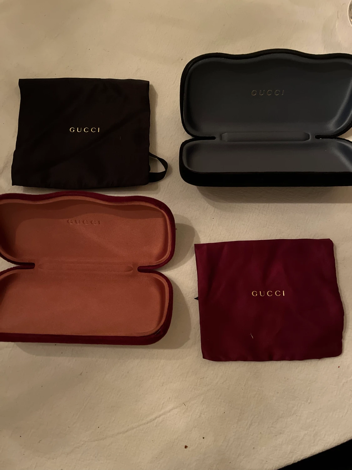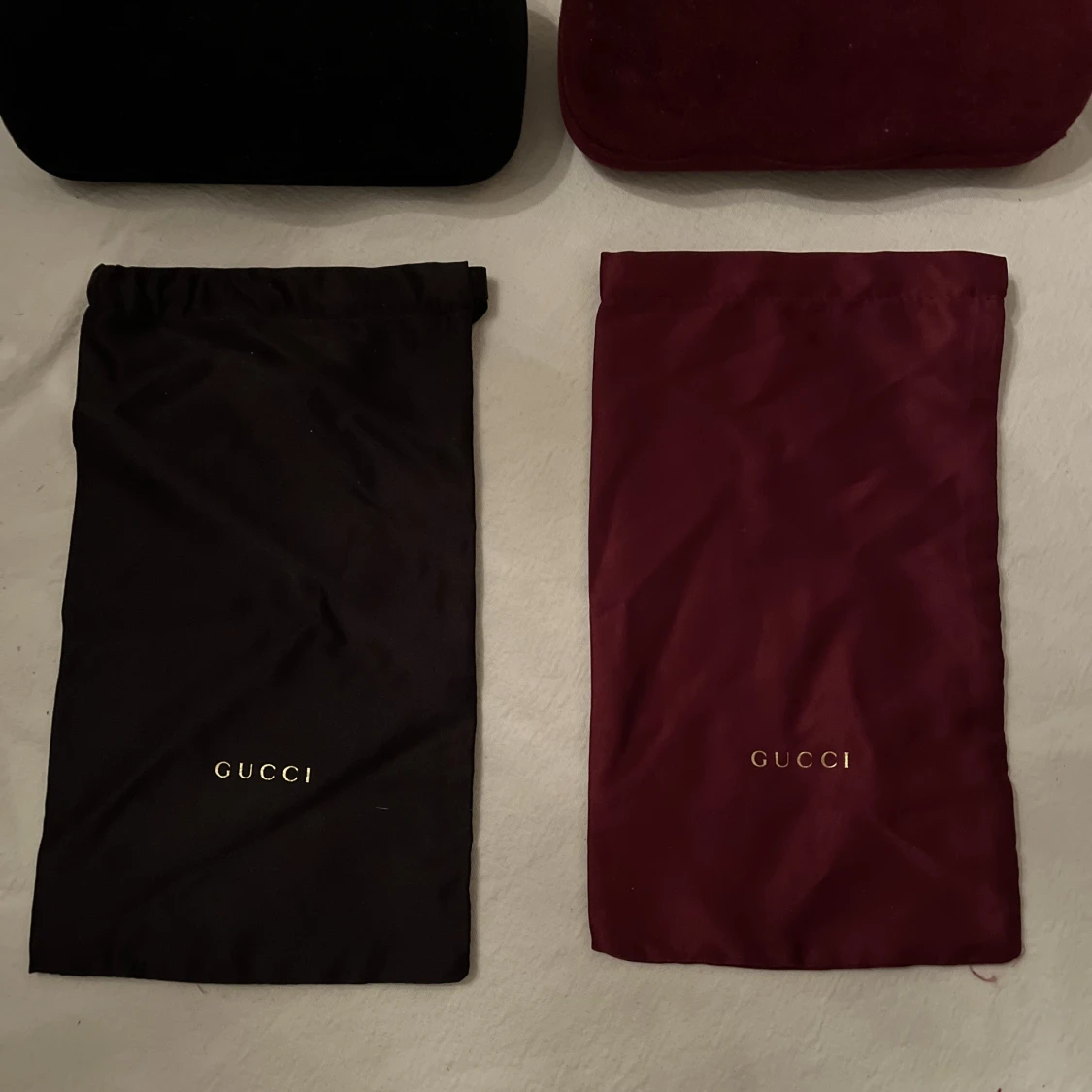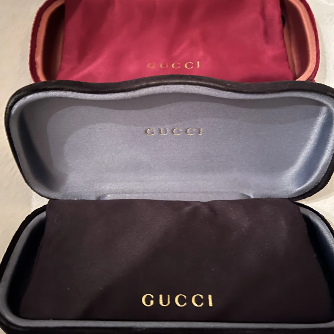 2 stycken Gucci glasögonfodral med påse. Säljer för jag inte har någon nytta för dem, kontakta mig ang. Pris. Kan förhandla