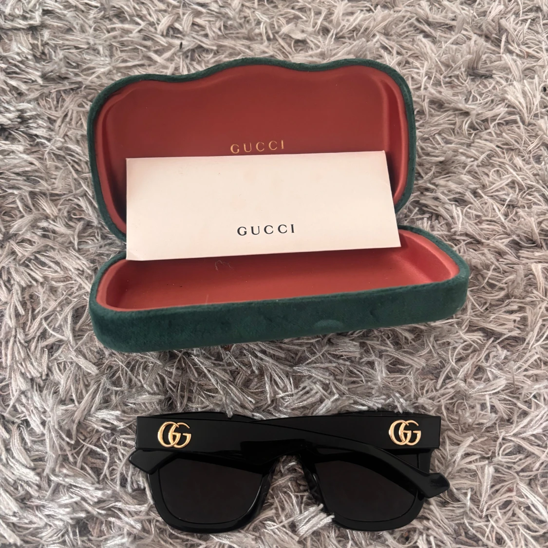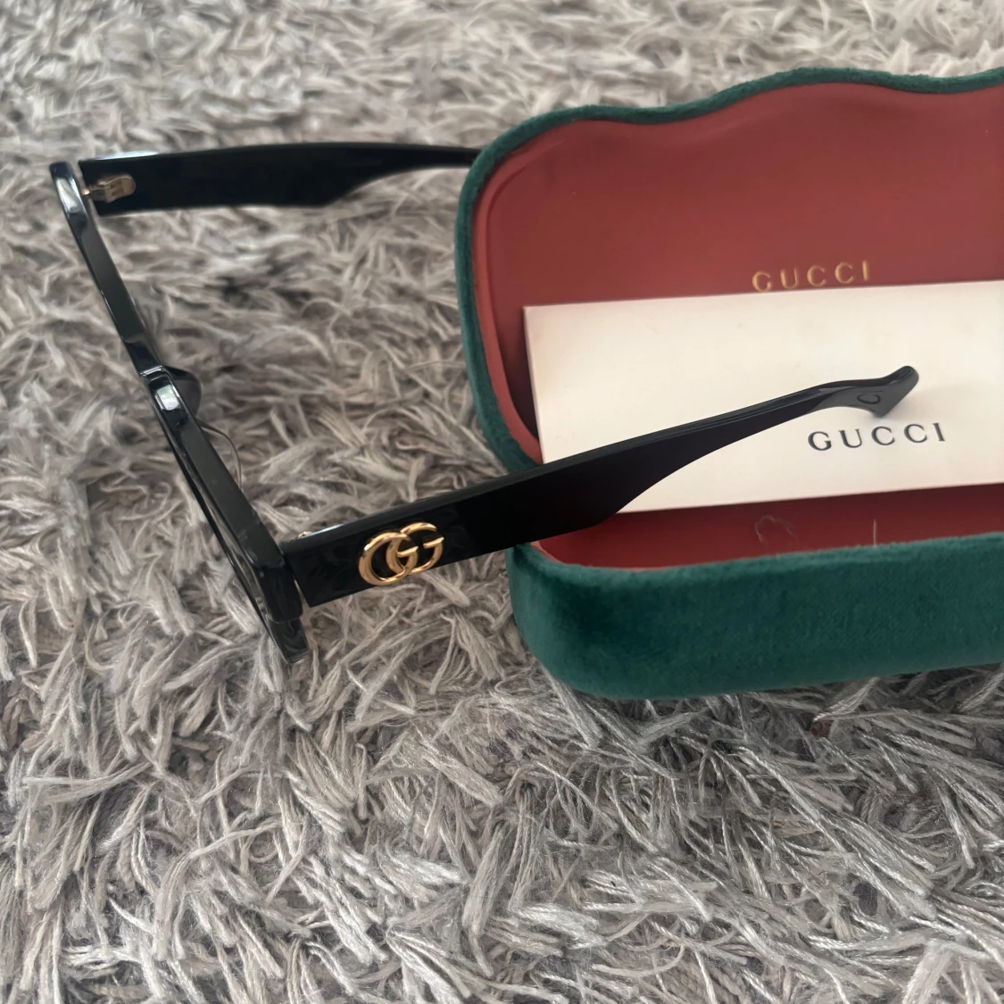 Snygga solglasögon från Gucci🥰perfekt passform och lagom stora. Lite småreparationer, liknande som syns på sista bilden🫶🏻men inget tänkbart.