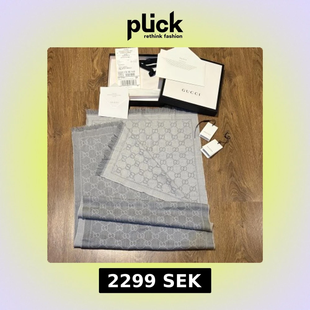 Gucci scarf för män. Nypris 6500kr färg är ljus grå och mörk grå på andra sidan, kommer med frakt papper från butiken och allt på bilden