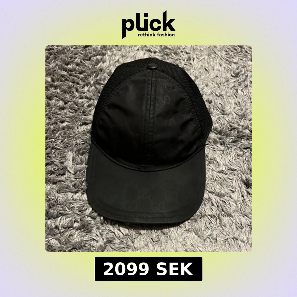 Snygg svart keps från Gucci med justerbar passform. Kepsen har ett diskret mönster och nätpaneler baktill för ventilation. Perfekt för en stilren look.
