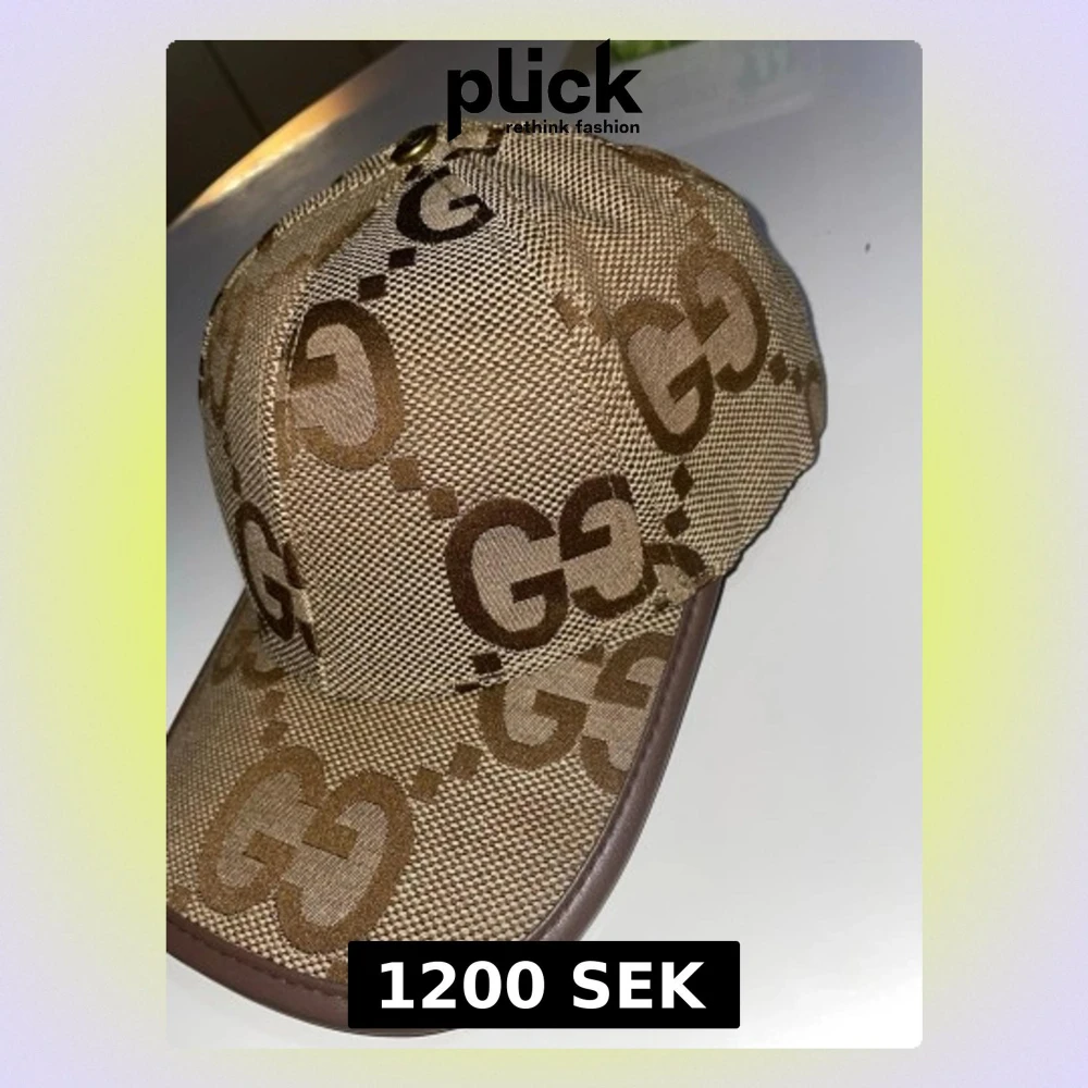 Säljer en beige keps från Gucci med det klassiska GG-mönstret i brunt. Kepsen har en böjd skärm med brunt kantband och justerbar rem i brunt läder baktill. Materialet är slitstark canvas och detaljerna ger en lyxig känsla.