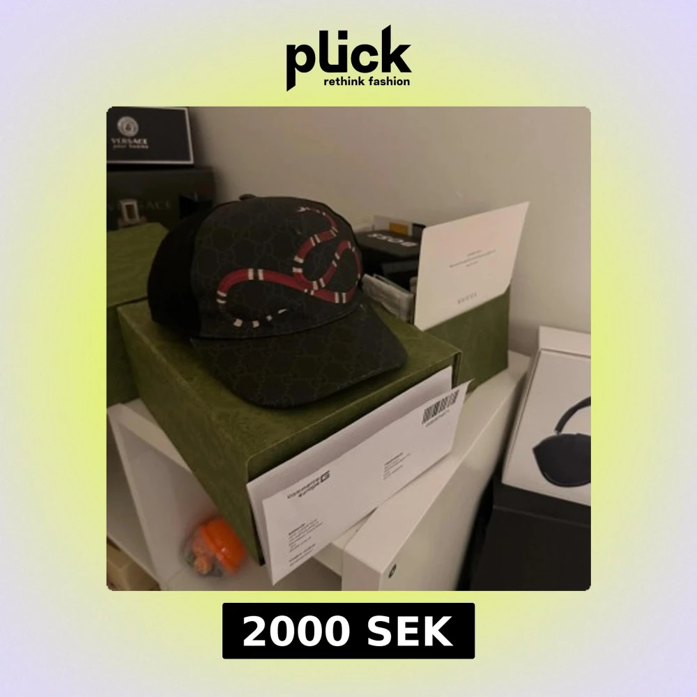 Säljer en svart keps från Gucci med klassiskt GG-monogram och en röd-vit orm broderad på framsidan. Kepsen har mesh på baksidan för extra ventilation och justerbar passform. Perfekt för dig som vill sticka ut med en lyxig och trendig accessoar.
