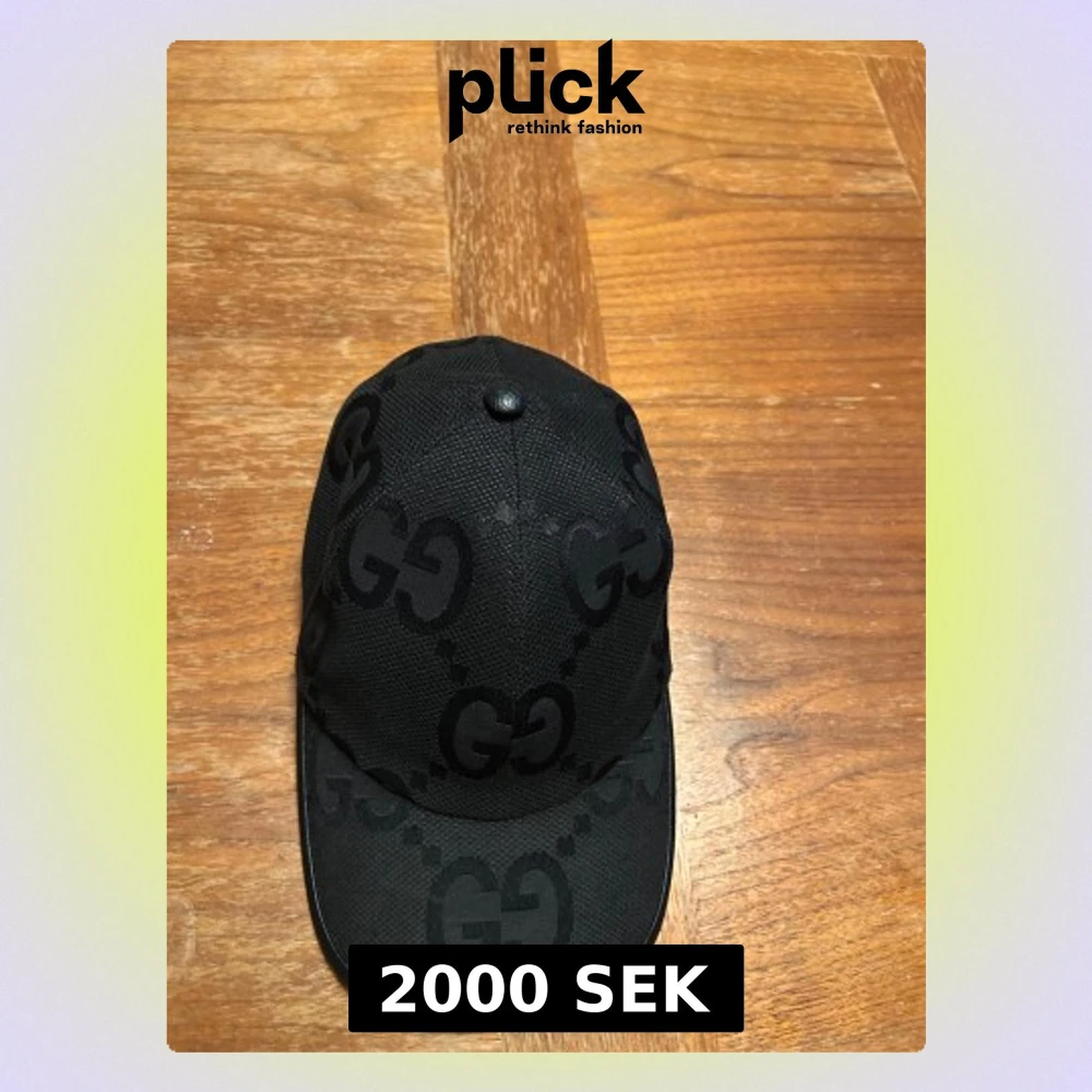 Snygg svart keps från Gucci med det klassiska GG-mönstret över hela kepsen. Kepsen har böjd skärm och justerbar rem baktill. Materialet är slitstark polyester och designen är riktigt clean och lyxig, perfekt för dig som gillar streetwear med designer-vibe.