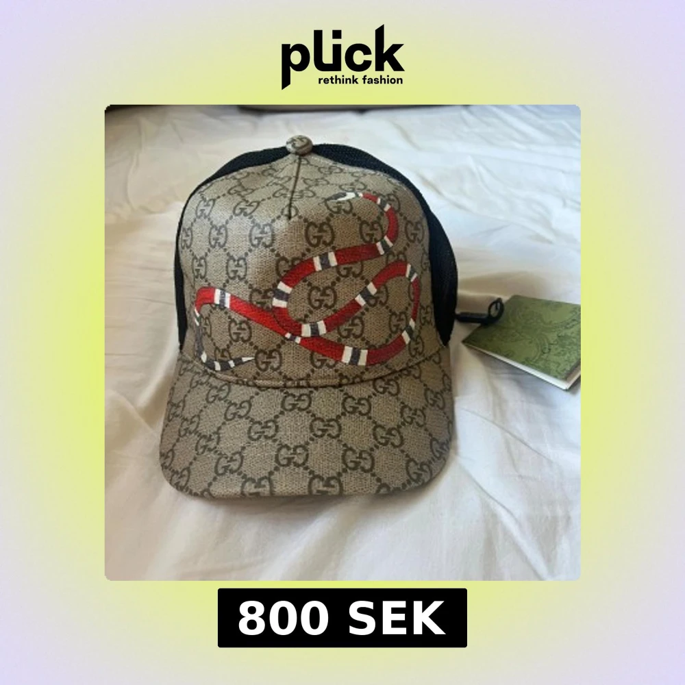 Snygg keps från Gucci med klassiskt GG-monogram i beige och brunt, prydd med en röd och vit orm framtill. Baksidan är i svart mesh med justerbart band i grönt och rött. Tillverkad i bomull och polyester, perfekt för dig som vill sticka ut.