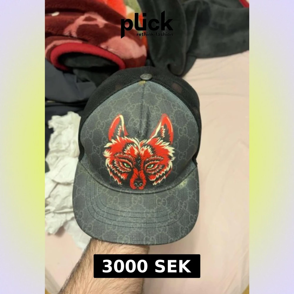 PRIS KAN DISKUTERAS. Snygg Gucci keps i svart och grått med GG-monogram och ett fett rött vargtryck framtill. Mesh på sidorna och justerbar rem med röd detalj bak. Märkt med Gucci-tag på insidan. Perfekt för dig som vill sticka ut med designer vibes.