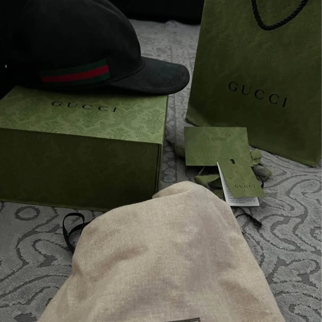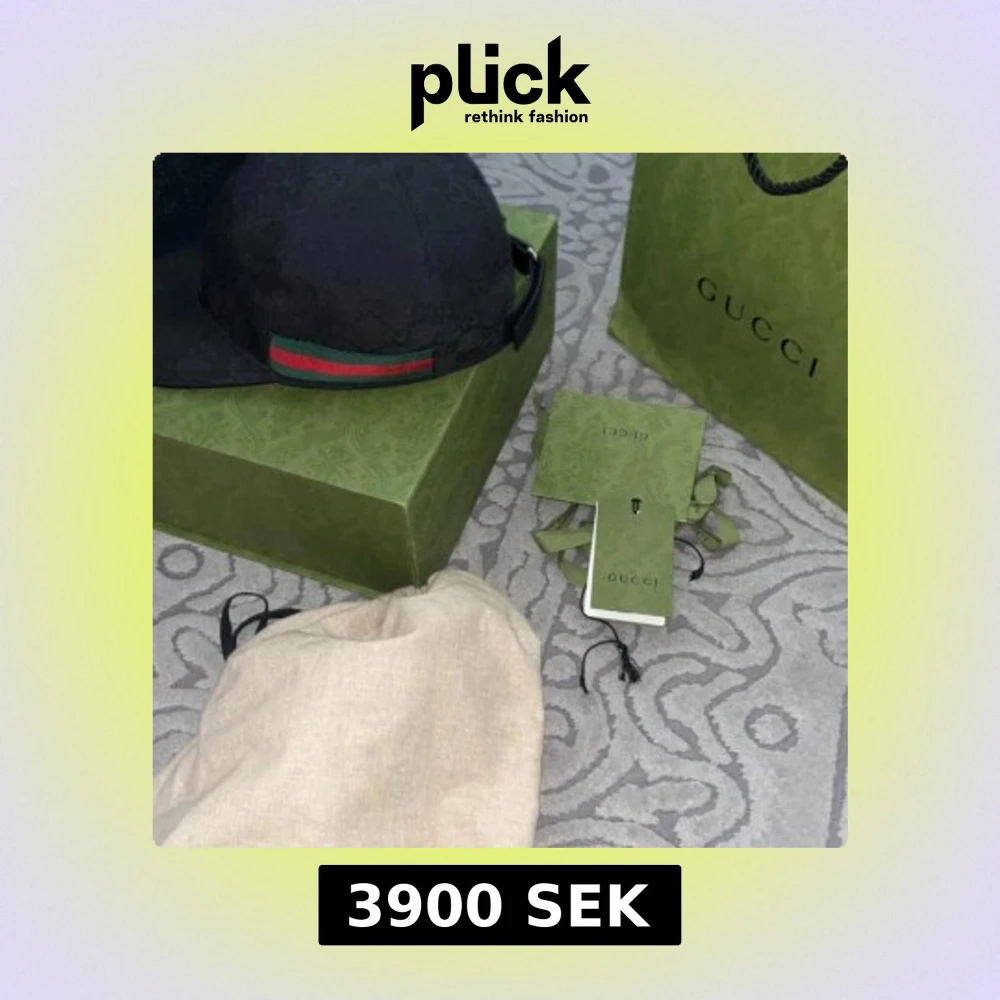 Snygg svart keps från Gucci med klassiska gröna och röda ränder. Justerbar rem baktill för perfekt passform. Perfekt för att ge din outfit en lyxig touch. Storlek L