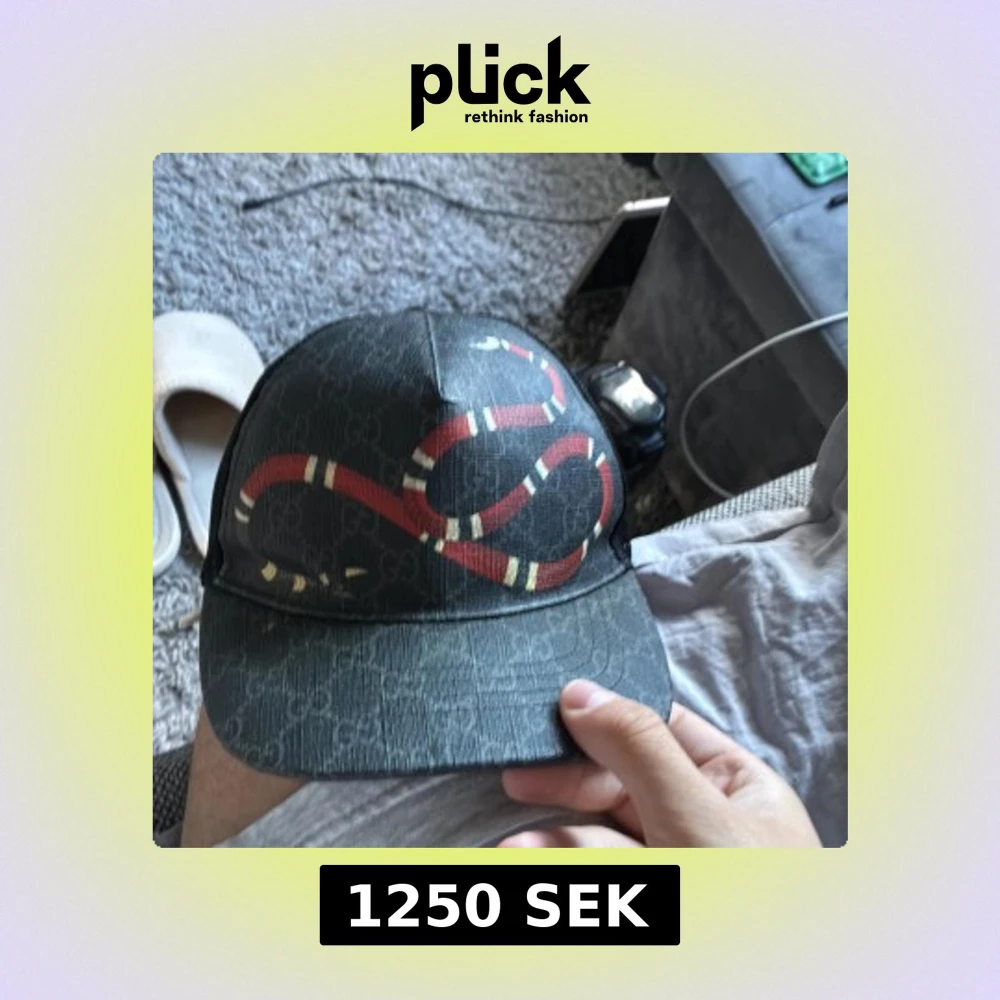 Snygg svart keps från Gucci med klassiskt GG-monogram och en stor röd och vit orm på framsidan. Kepsen har mesh på sidorna och baksidan för extra ventilation. Tillverkad i Italien och perfekt för dig som vill sticka ut med en lyxig accessoar.