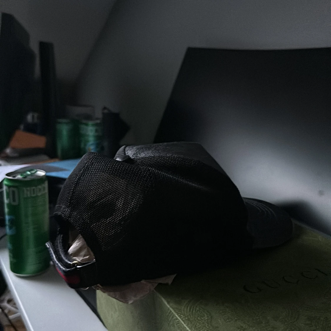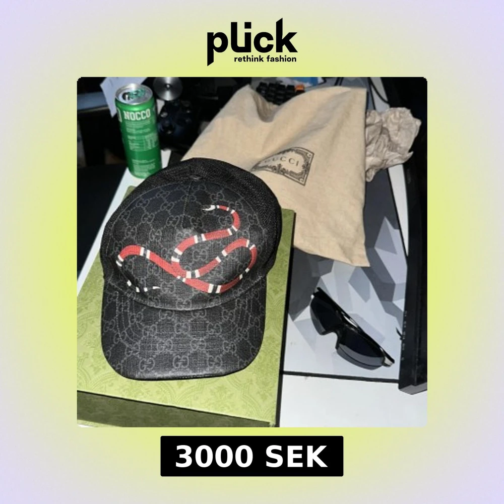 Snygg svart keps från Gucci med ett iögonfallande rött ormmotiv. Kepsen har ett diskret mönster och är tillverkad i Italien. Perfekt för att ge din outfit en lyxig touch. Har kvitto som jag har köpt i Gucci affären i en Gucci affär i Tyskland