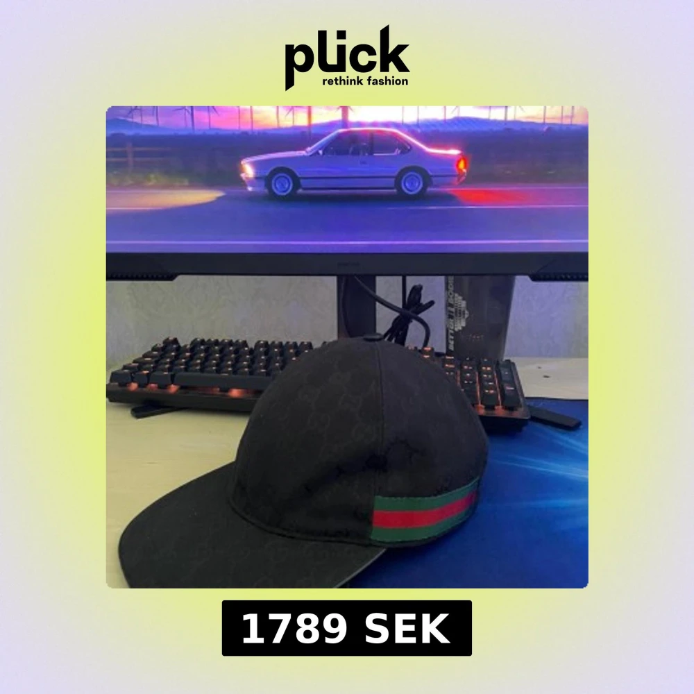 Svart keps från Gucci med diskret GG-logomönster över hela kepsen och klassiska gröna och röda ränder på sidan. Snygg och stilren modell med böjd skärm, perfekt för att lyfta din outfit.Ny men andvänd.