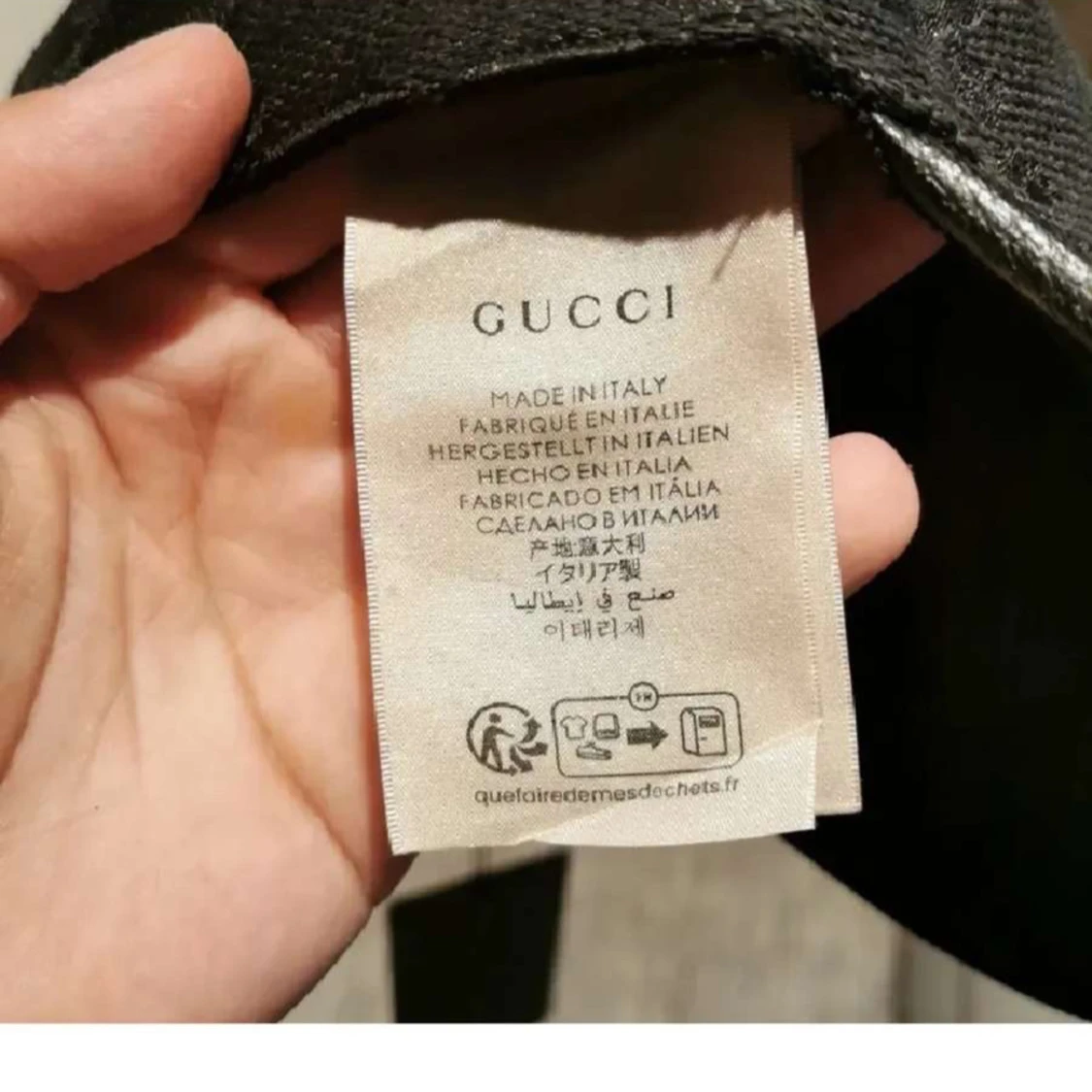 Snygg svart keps från Gucci med klassiskt GG-monogram i mörkare nyans över hela kepsen. Kepsen har böjd skärm och justerbar rem baktill. Tillverkad i Italien och kommer med originaltagg. Perfekt för dig som vill ha en exklusiv och trendig accessoar. Pris kan diskuteras