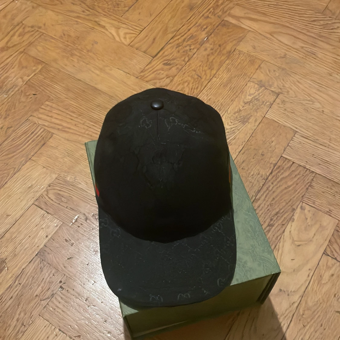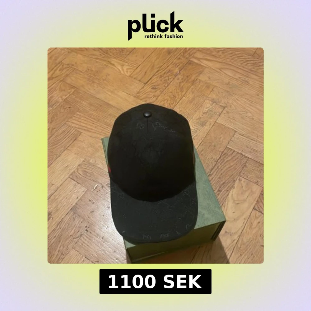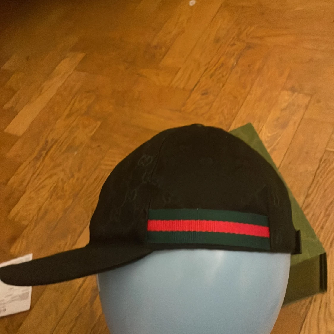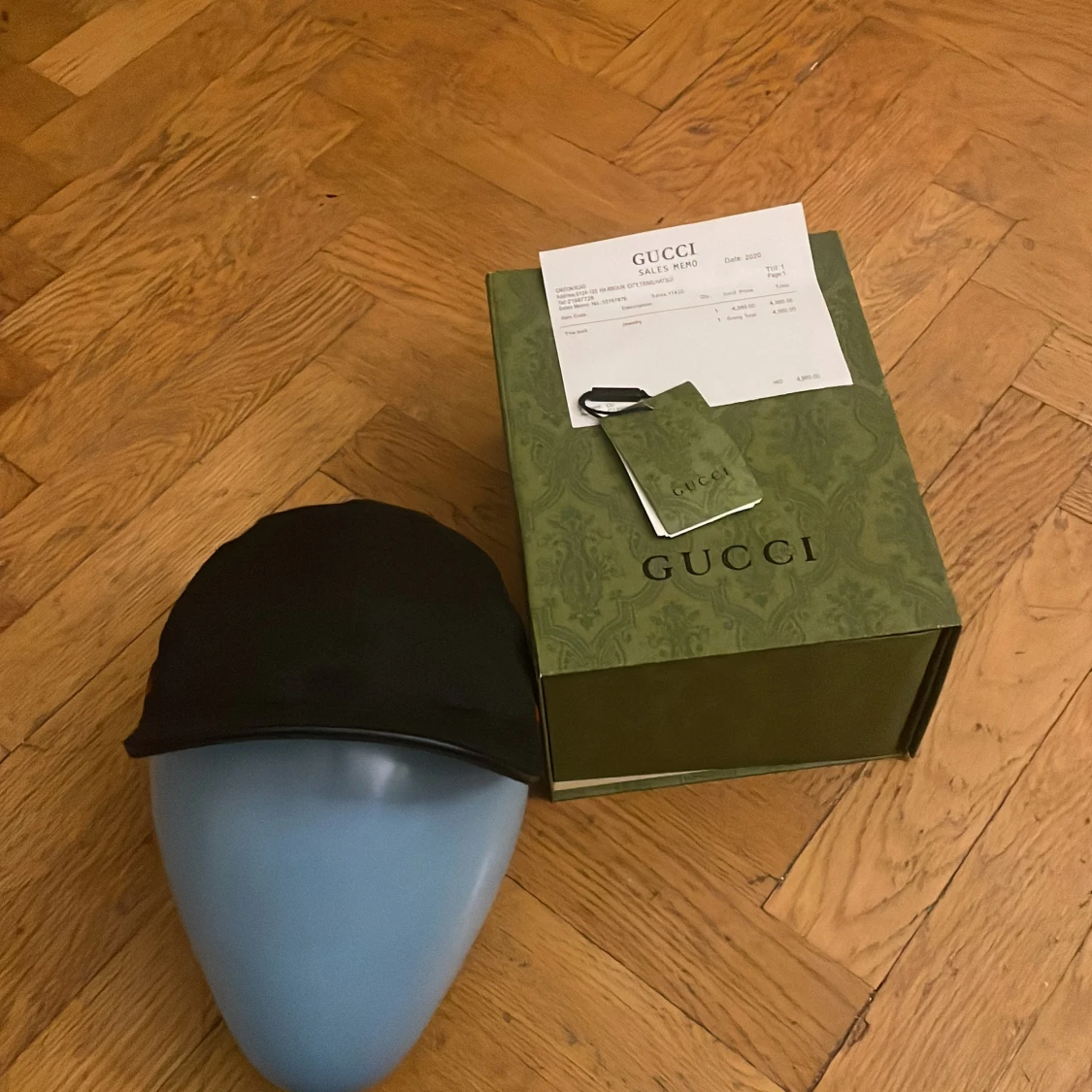 Säljer en svart keps från Gucci med diskret GG-monogram i tyget. Kepsen har klassisk form, böjd skärm och justerbart spänne bak i skinn. Sidorna pryds av Guccis ikoniska gröna och röda band. Perfekt för dig som vill ha en lyxig och stilren accessoar. Om du har någon fråga är det bara att skriva! Priset kan diskuteras vid SNABB affär!😁