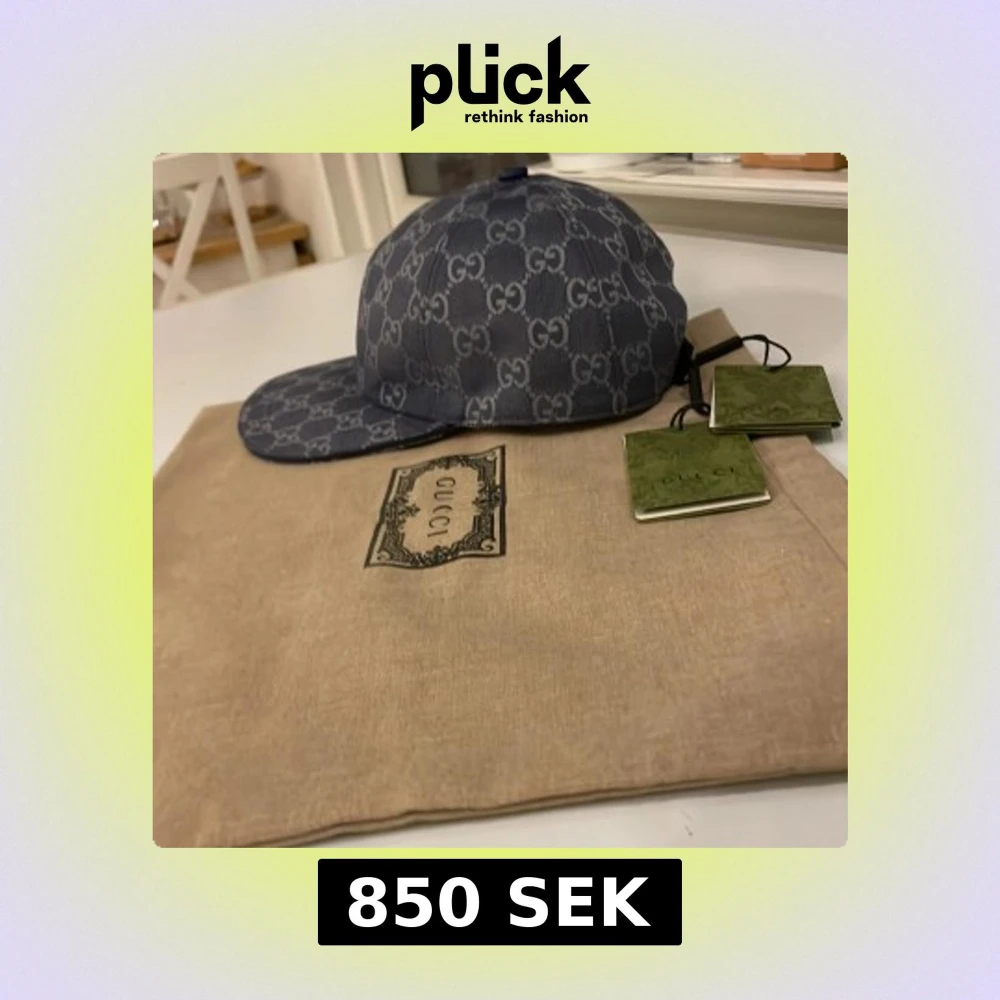 Snygg blå keps från Gucci med klassiskt GG-mönster över hela kepsen. Justerbar rem baktill i svart och insida i ljus bomull. Perfekt för dig som vill ha en lyxig och trendig accessoar med tydlig designerstil.