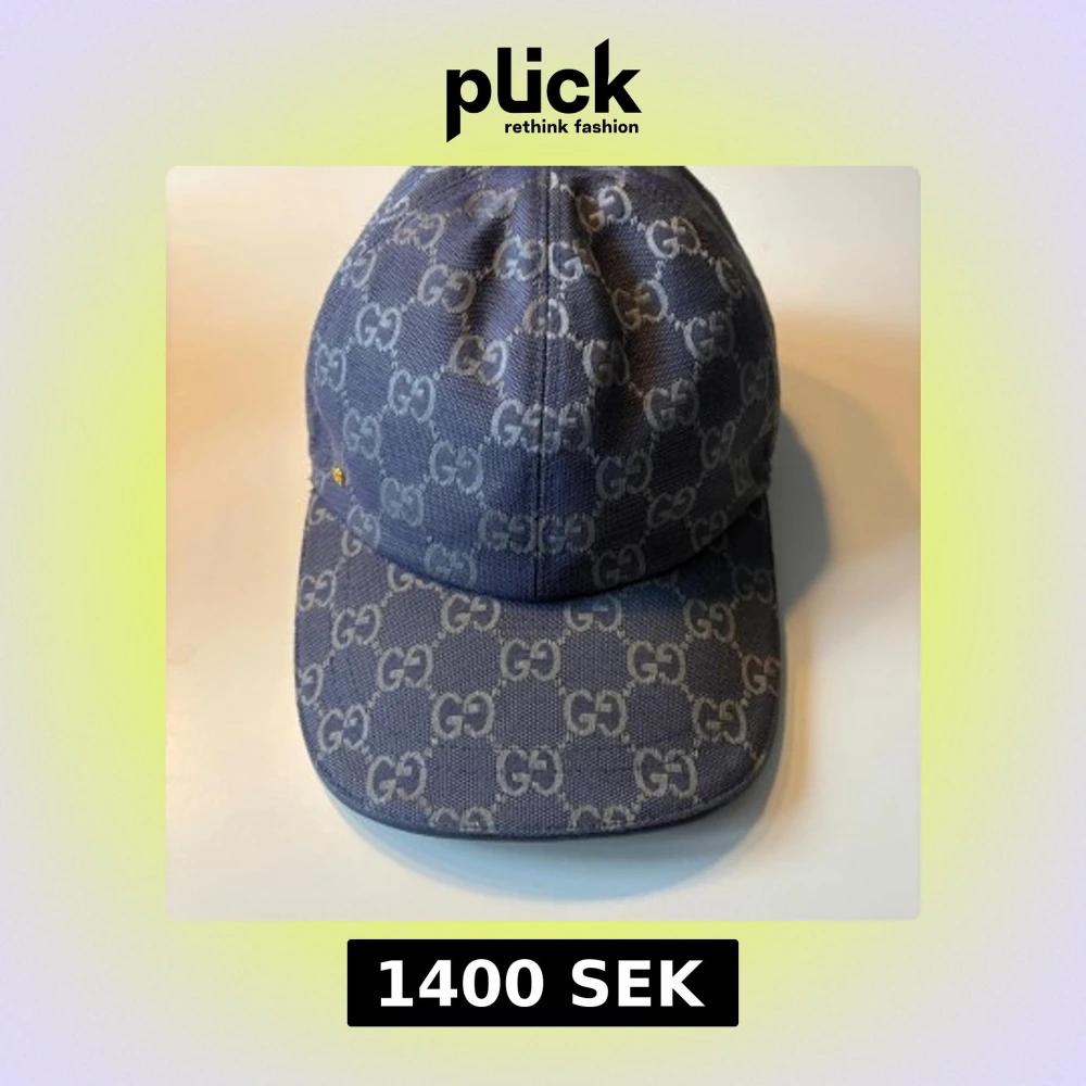 Snygg blå keps från Gucci med ikoniskt GG-mönster över hela kepsen. Kepsen har böjd skärm och justerbar rem baktill i metall. Materialet är bomull och polyester, vilket gör den både bekväm och hållbar. Perfekt för dig som vill ha en lyxig streetstyle-look. Använd väldigt få gånger. Pris kan diskuteras vid snabb affär