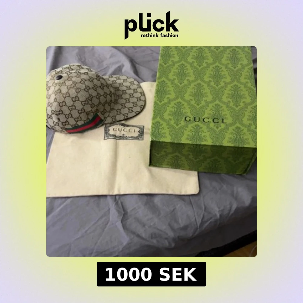 Säljer en beige keps från Gucci med klassiskt GG-monogram och grönt/rött band på sidan. Kepsen har böjd skärm och är tillverkad i canvasmaterial. Kommer med originalpåse och låda. Säljes billigt vid snabbare afärr
