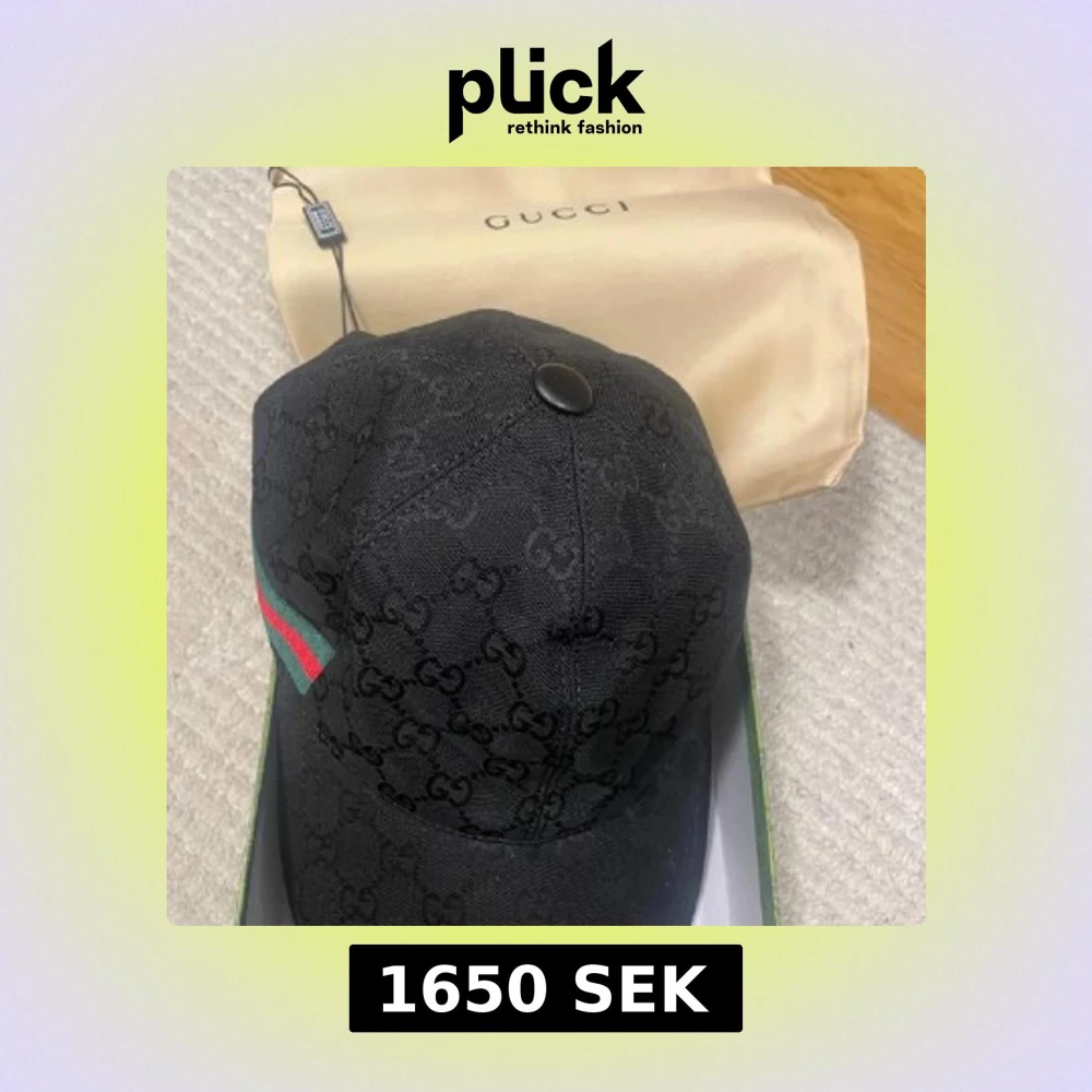 Snygg svart keps från Gucci med klassiskt GG-monogram över hela ytan och ikoniska gröna och röda ränder på sidan. Kepsen har böjd skärm och justerbar rem baktill. Materialet är bomull och insidan är brun. Aldrig använt förut!
