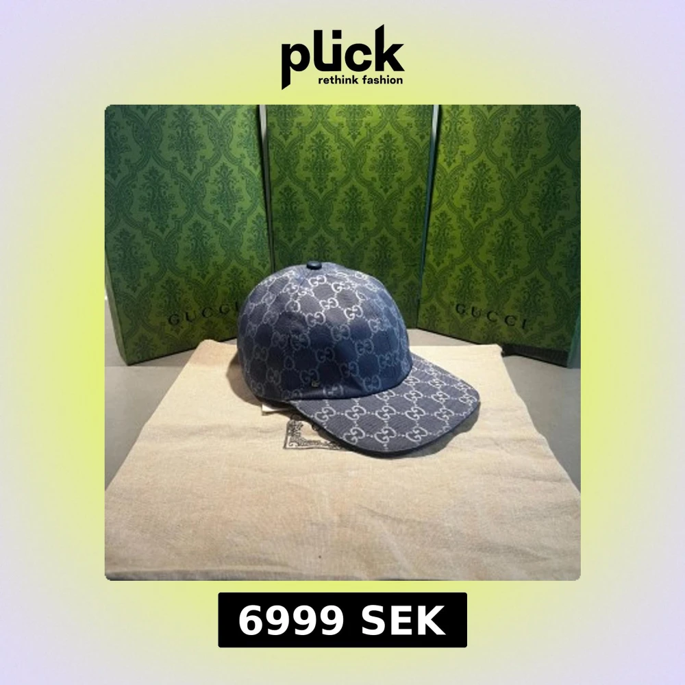 Snygg blå keps från Gucci med ikoniskt GG-monogram över hela kepsen. Tillverkad i bomull och polyester med justerbar rem baktill. Perfekt accessoar för dig som vill sticka ut med lyxig streetstyle.