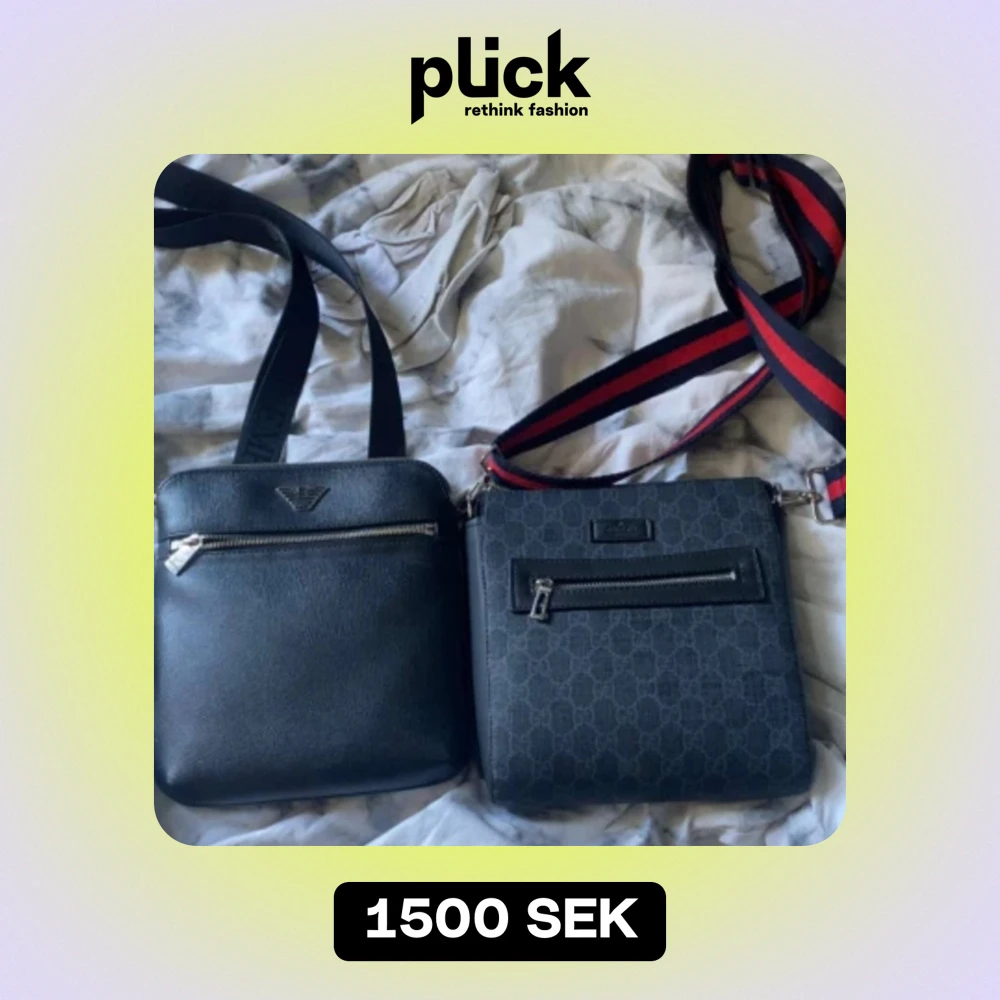 Väskorna är i bra skick säljer då dom inte längre kommer till användning, armani väskan är äkta tillbehör tillkommer och säljer den för 1000kr separat. Gucci väskan har jag fått och är osäker på om den är äkta men tror det.