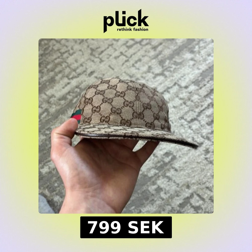 Snygg keps från Gucci i beige och brunt med klassiskt GG-monogram över hela kepsen. Justerbar rem i mörkbrunt läder baktill och ikoniska gröna/röda ränder på sidan. Tillverkad i bomullscanvas med exklusiv känsla. Perfekt för dig som vill sticka ut med lyxig streetstyle.