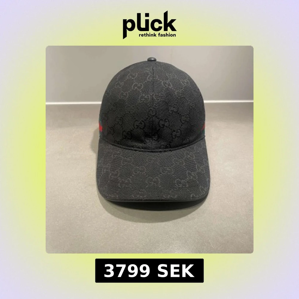 Snygg svart keps från Gucci med klassiskt GG-monogram över hela kepsen. På sidorna finns de ikoniska gröna och röda ränderna. Justerbar rem baktill och insida med Gucci-tag. Perfekt för dig som vill ha en exklusiv streetstyle-look.