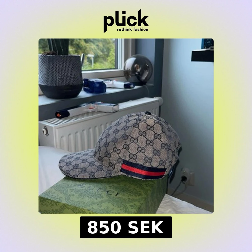 Säljer en snygg Gucci keps i beige och marinblått med klassiskt GG-monogram över hela kepsen. Kepsen har en röd och marinblå rand på sidan och justerbar rem baktill. Materialet är bomullscanvas och insidan är fodrad i svart tyg. Perfekt för dig som vill sticka ut.